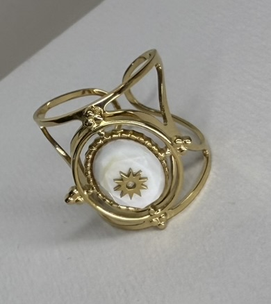 Son design délicat et symbolique évoque la lumière, la force et l’élégance, parfait pour ajouter une touche de mystère à ta tenue.