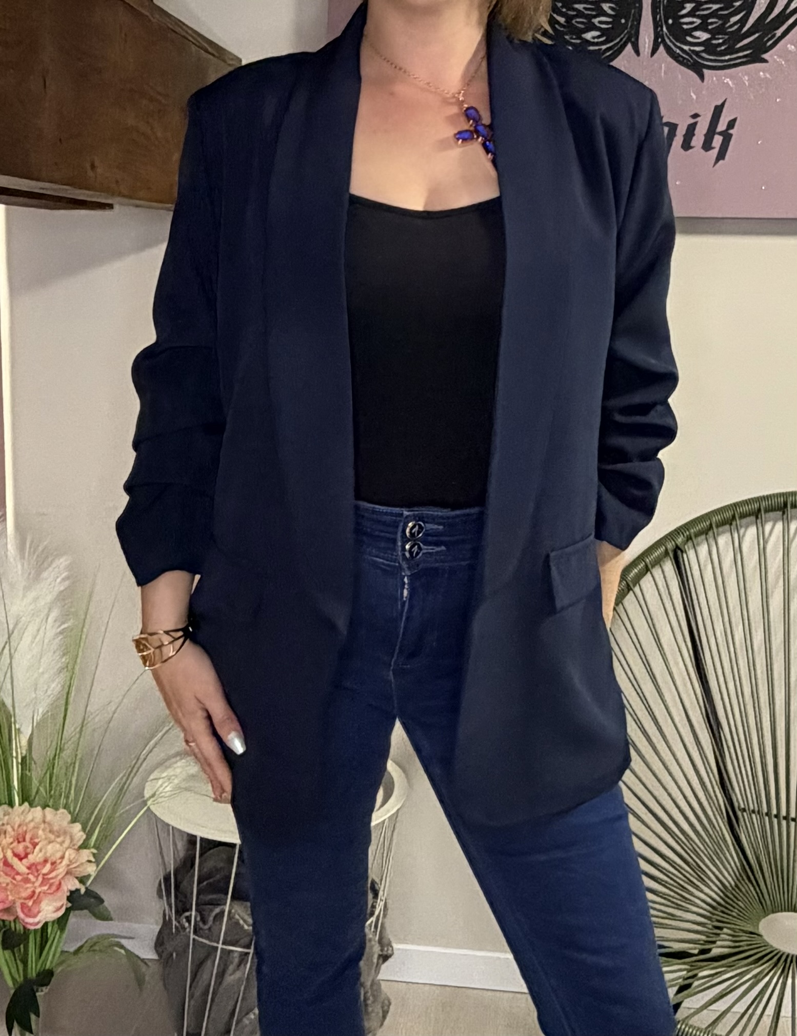 Affirme ton style avec ce blazer, une pièce incontournable qui allie élégance, confort et originalité.