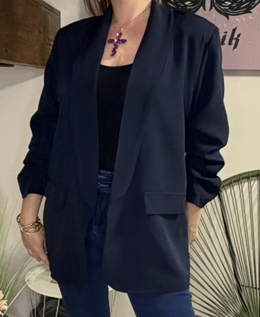 Blazer manches plissées marine