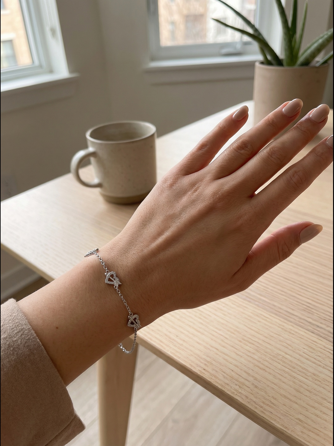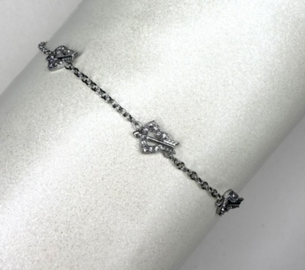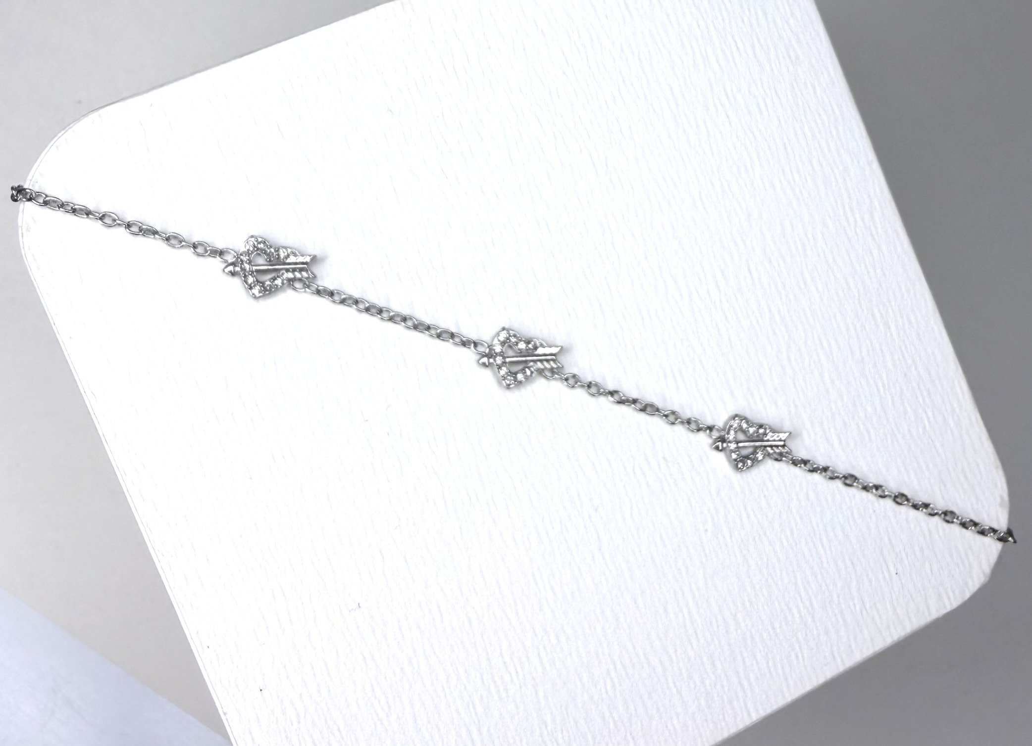 Craque pour ce bracelet romantique et scintillant orné de petits cœurs traversés d’une flèche, délicatement sertis de strass.