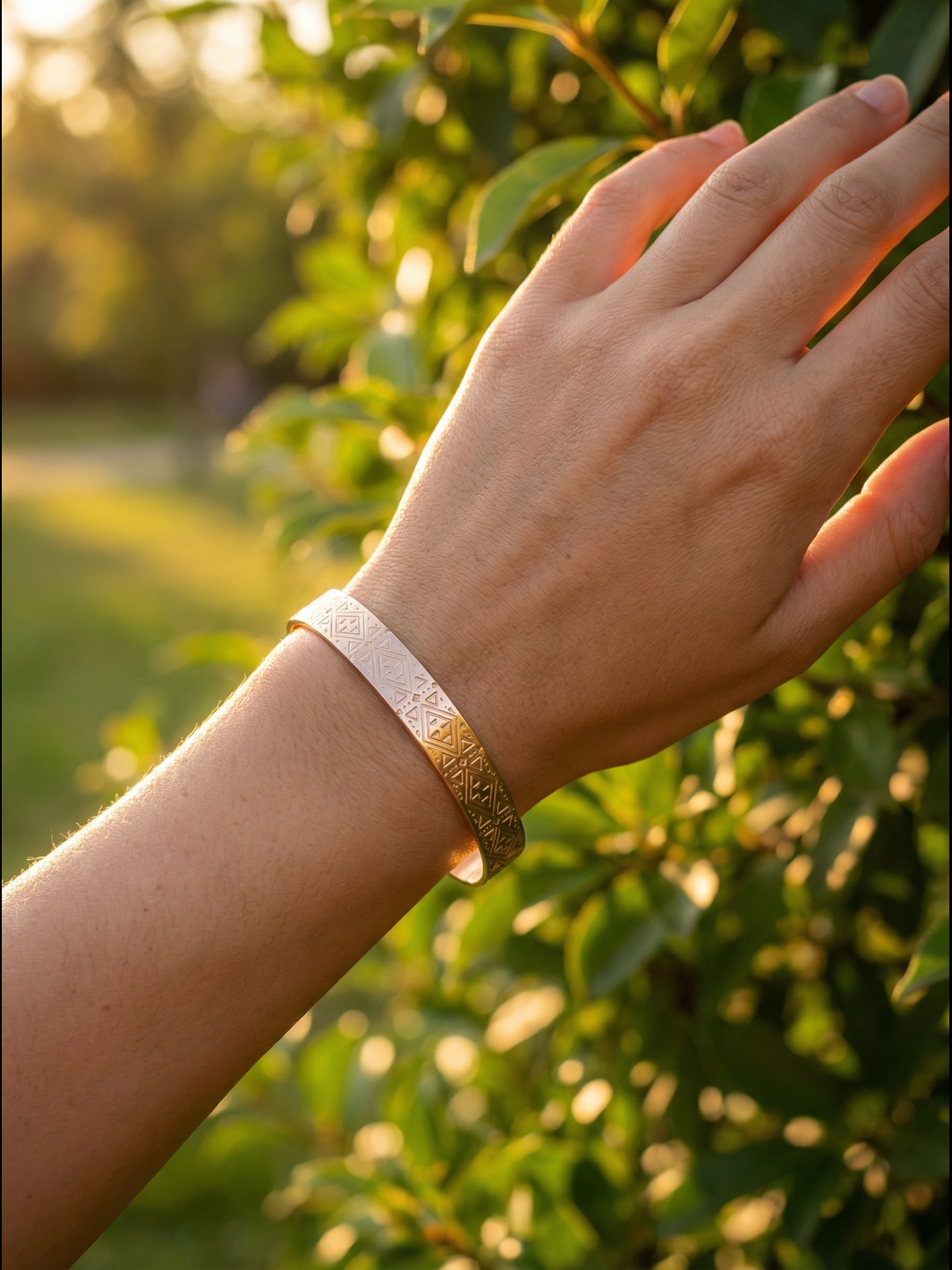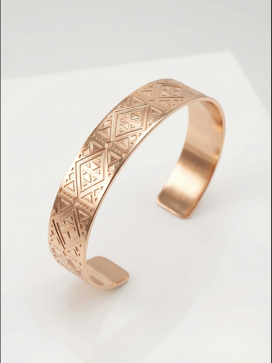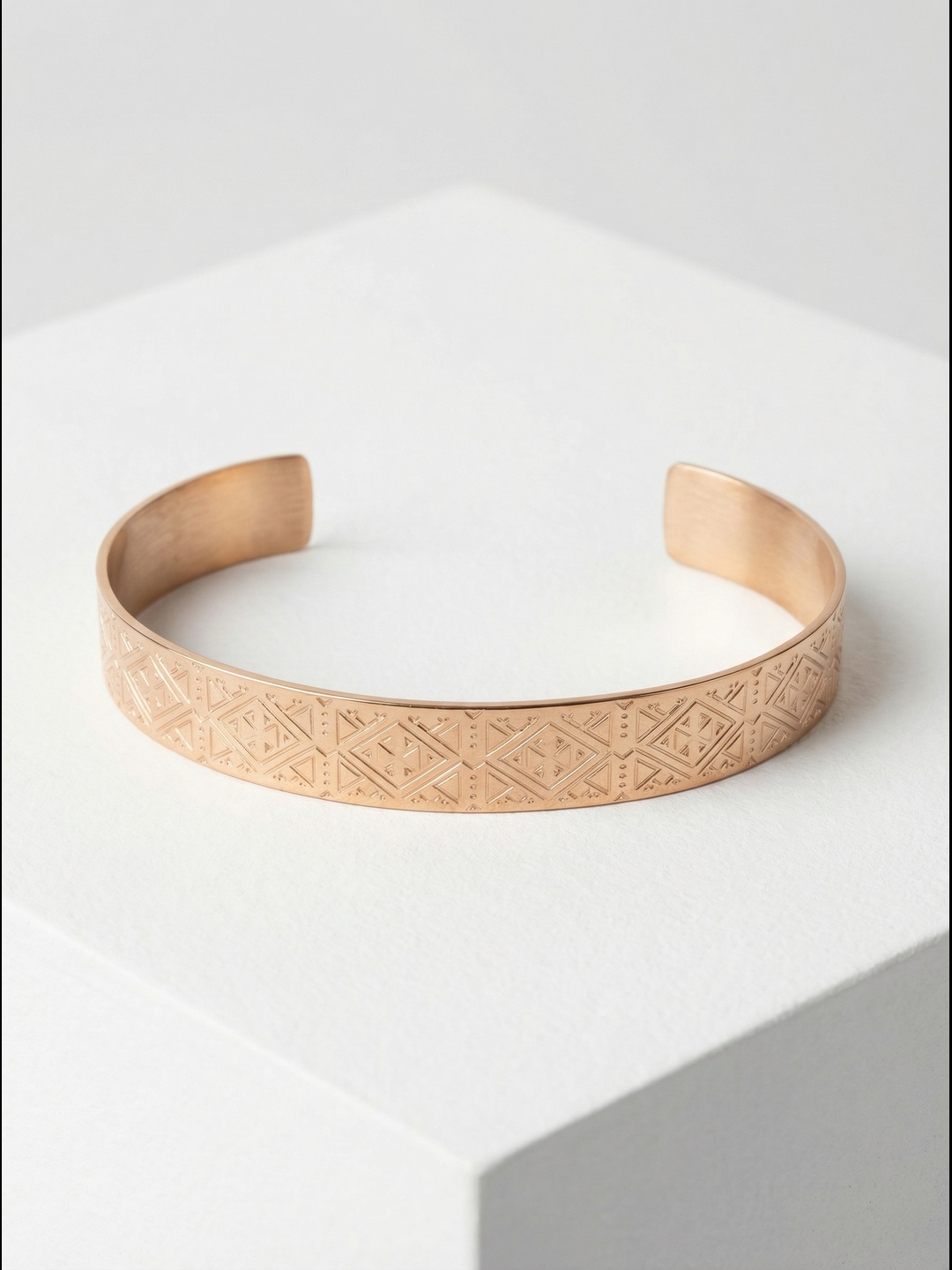 Sublime ton poignet avec ce bracelet jonc doré rose, délicatement gravé de motifs d’inspiration Maya.