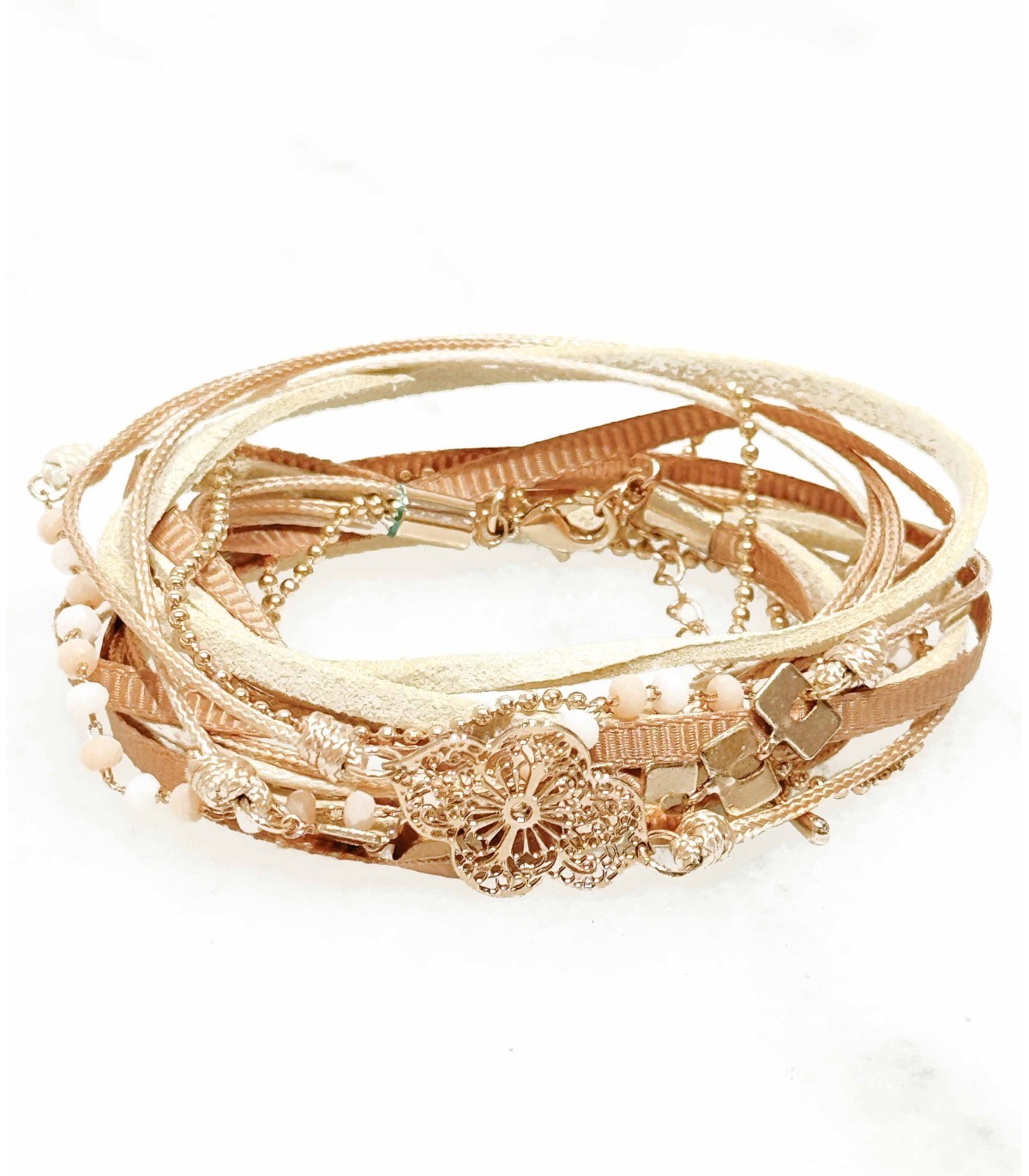 Apporte une touche de fraîcheur et d’élégance décontractée à ton poignet avec ce bracelet multi rang original.