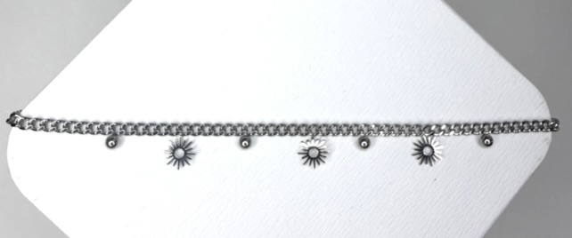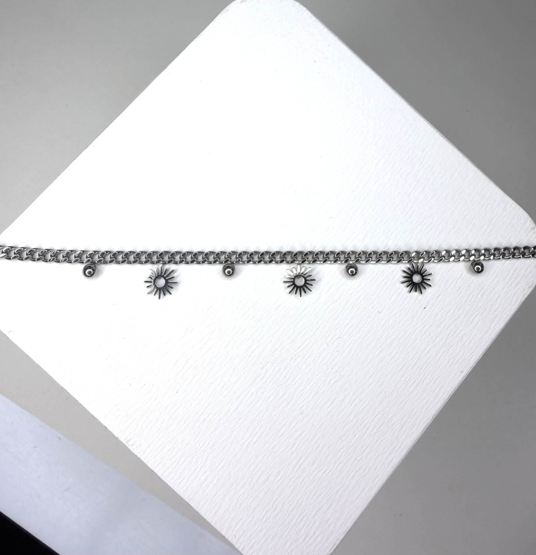 Apporte une touche lumineuse à ton poignet avec ce bracelet argenté orné de pampilles en forme de soleil.