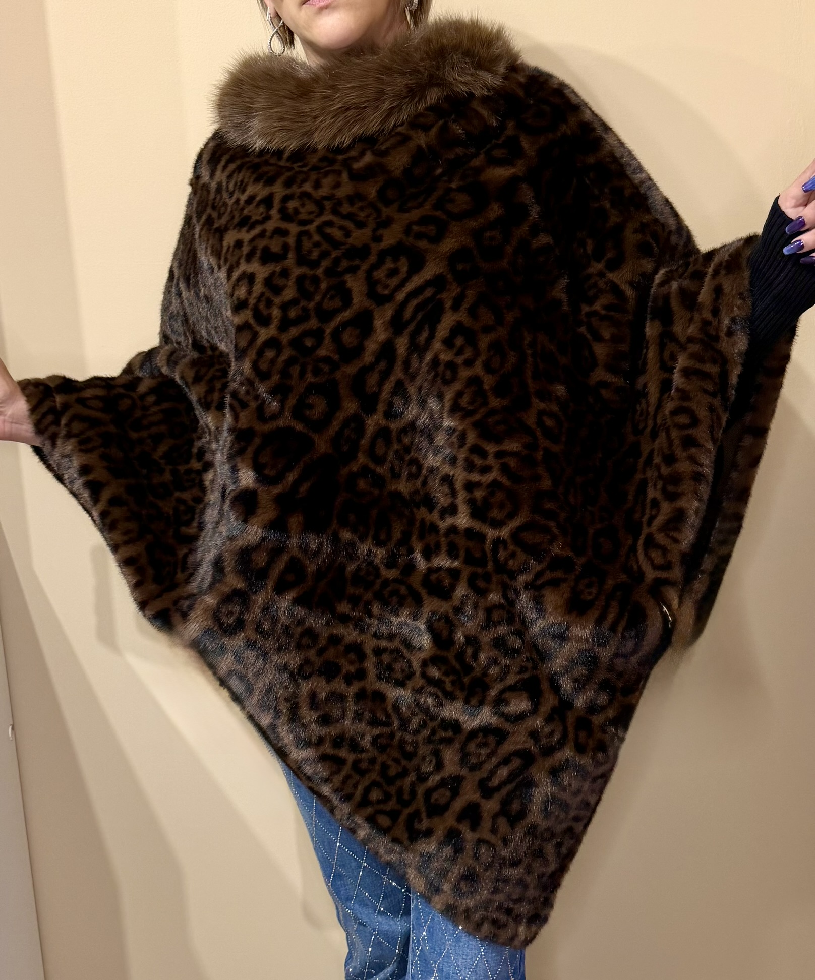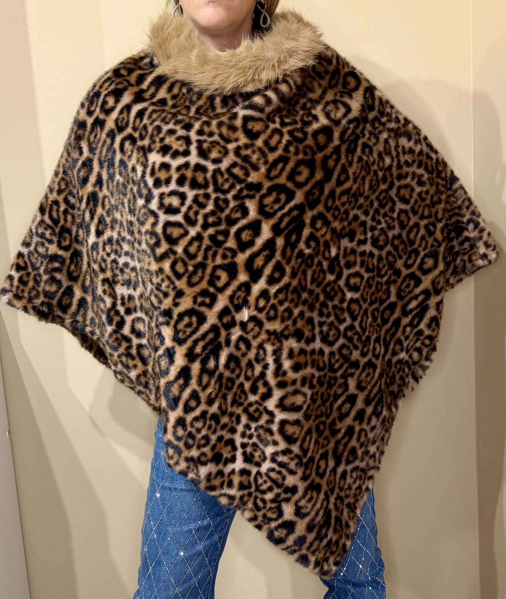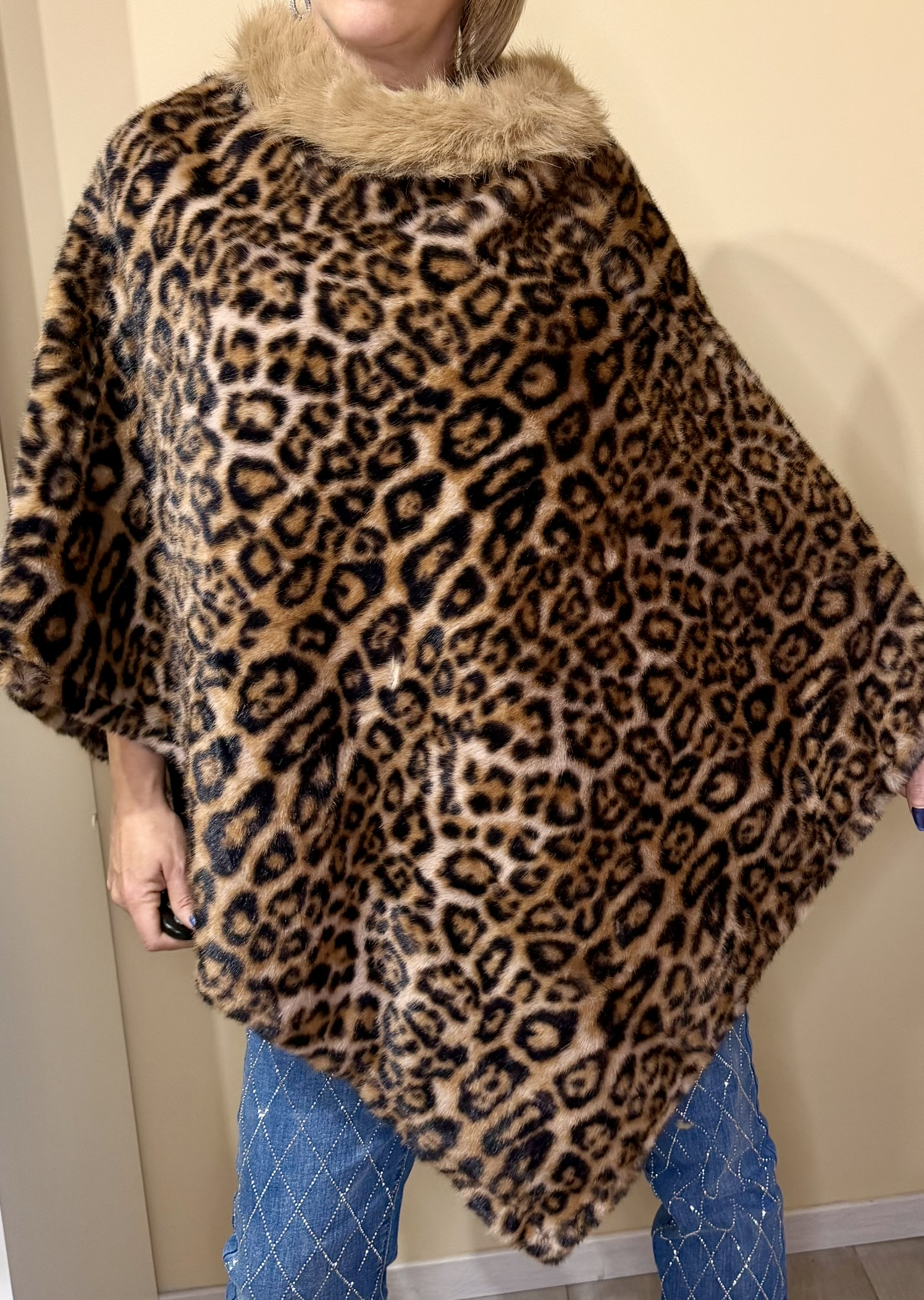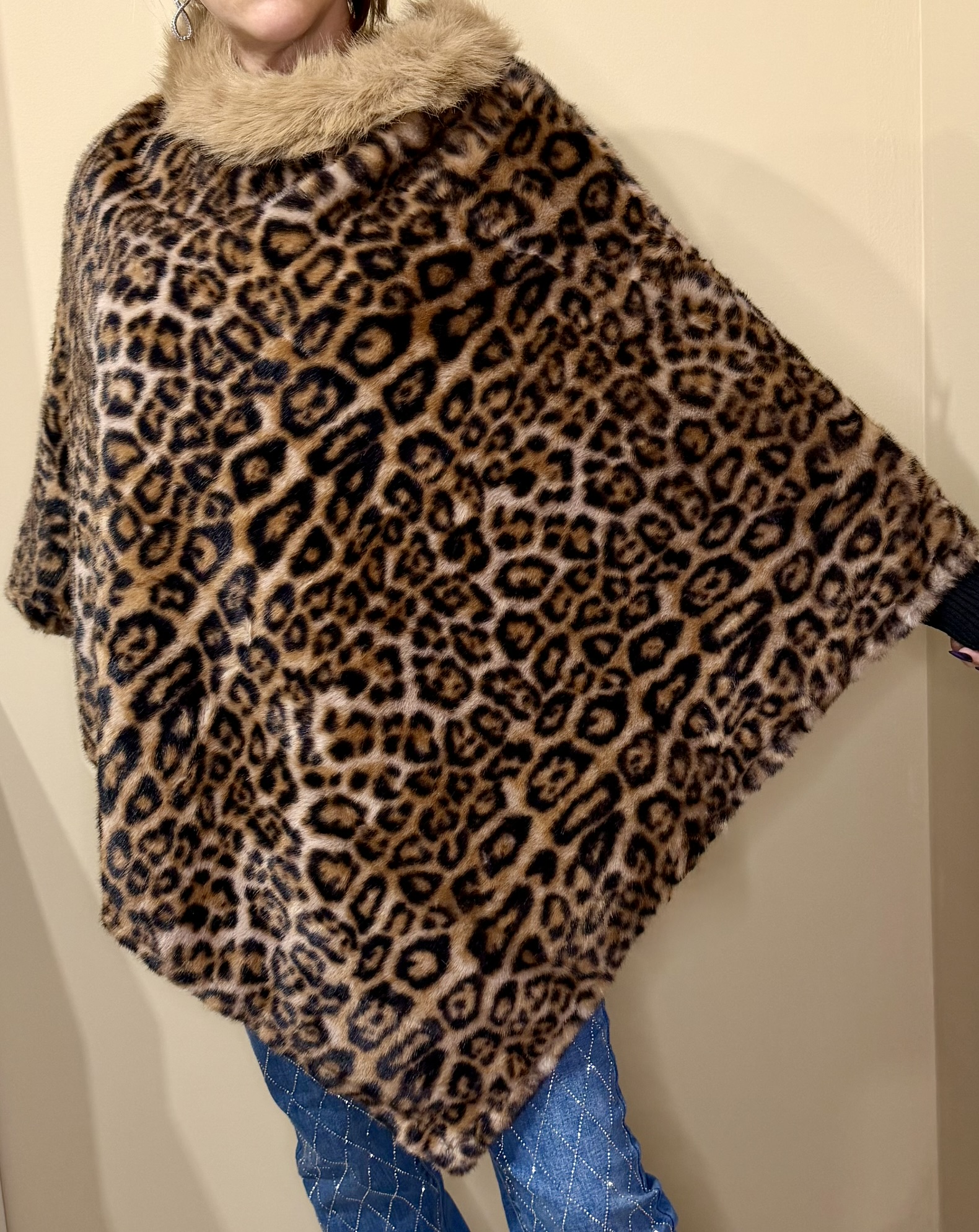 Affirme ton allure avec cette cape en fausse fourrure léopard, une pièce tendance qui allie confort, douceur et caractère.