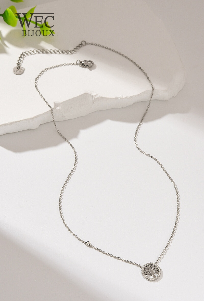 Symbole de force, de croissance et d’énergie positive, ce collier argenté orné d’un pendentif arbre de vie incarne la beauté naturelle et la sérénité.