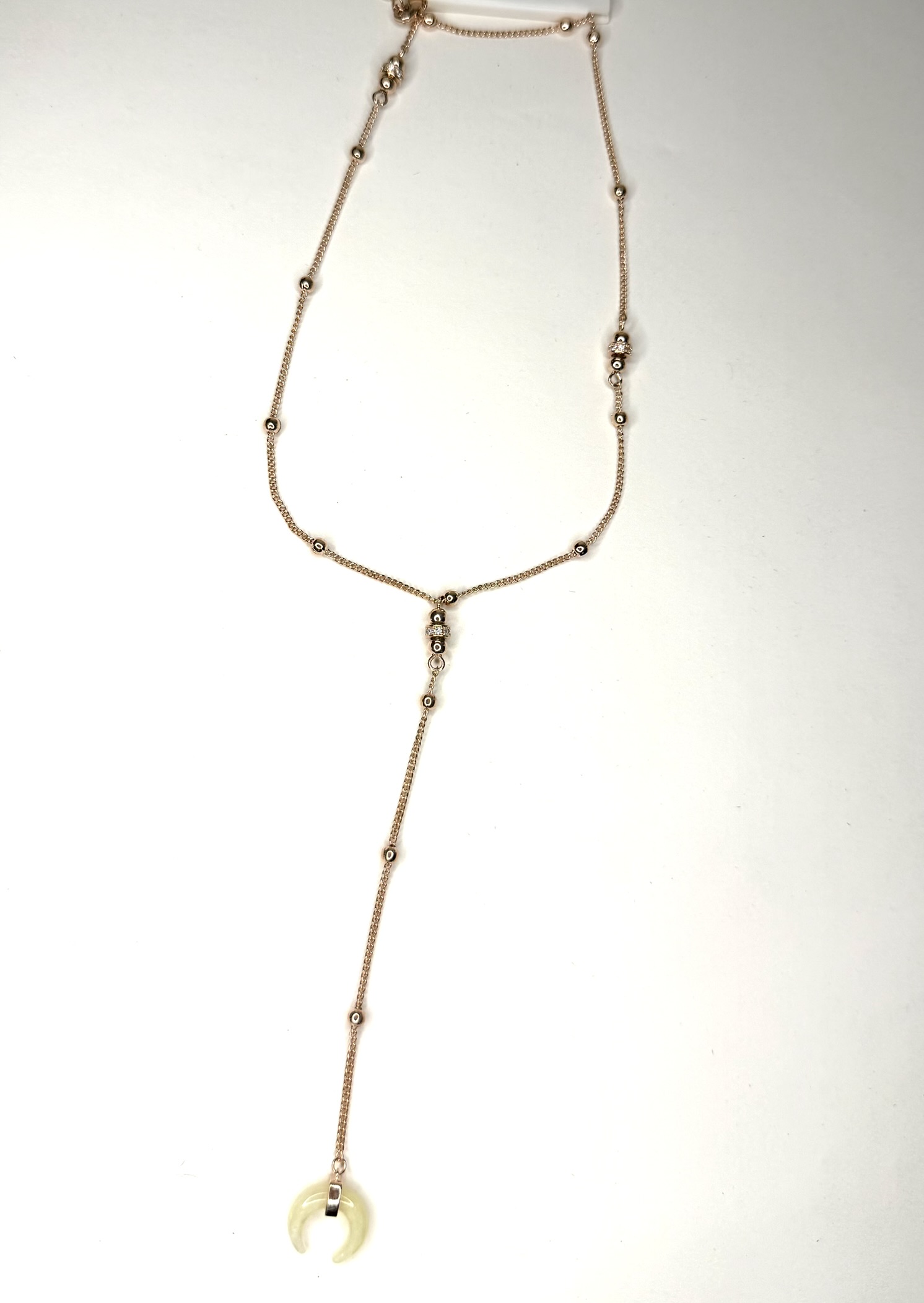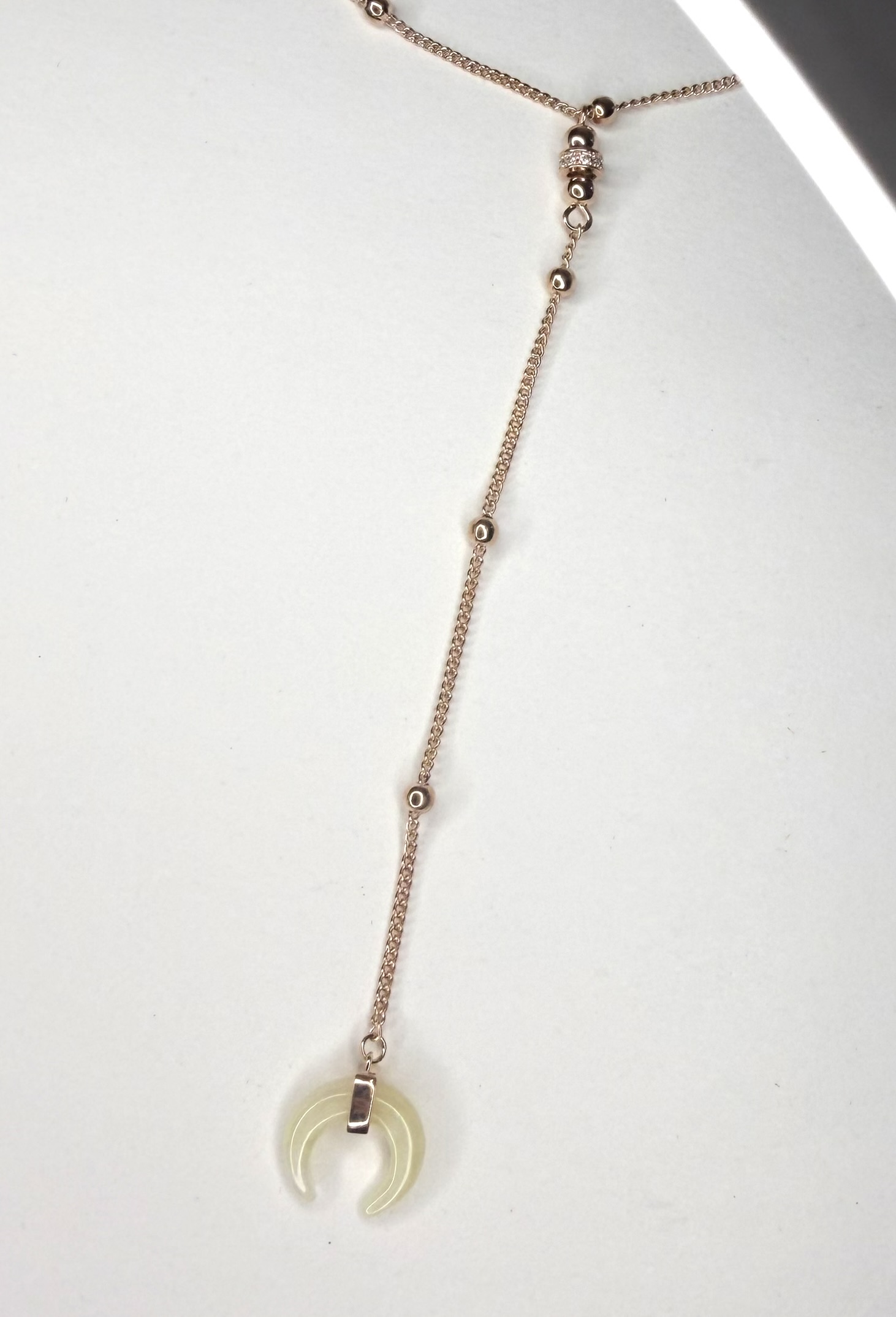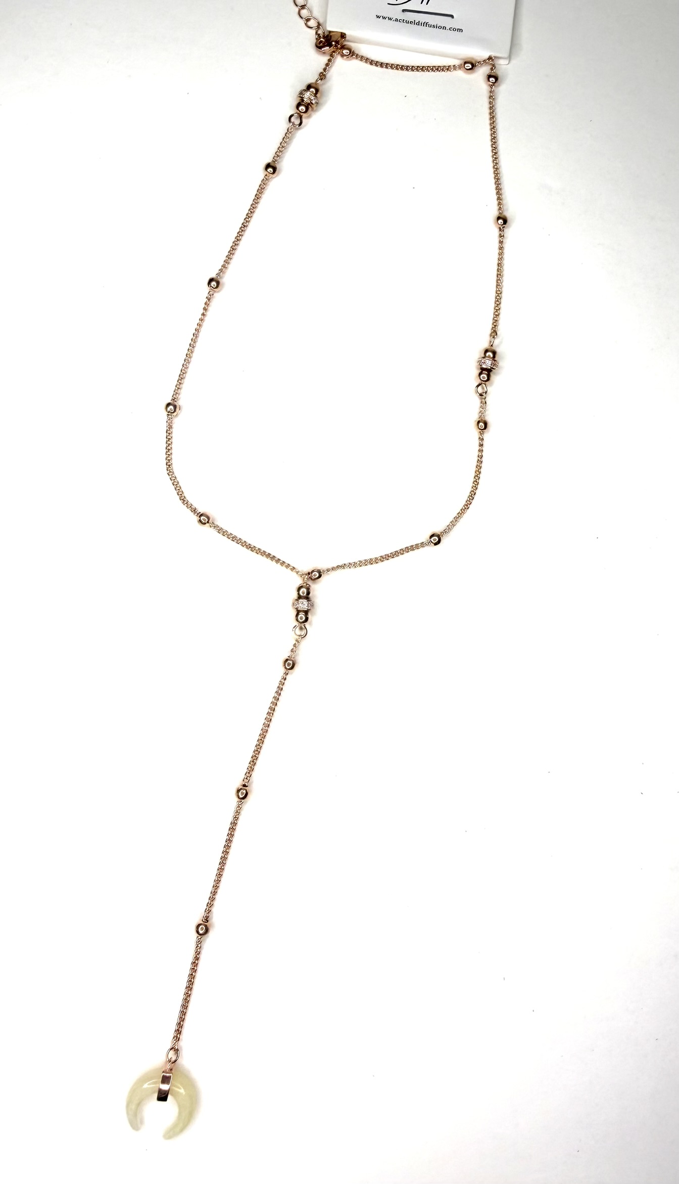 Adopte une allure bohème chic avec ce collier doré rose orné d’une corne en pierre semi-précieuse, symbole de protection et de féminité.