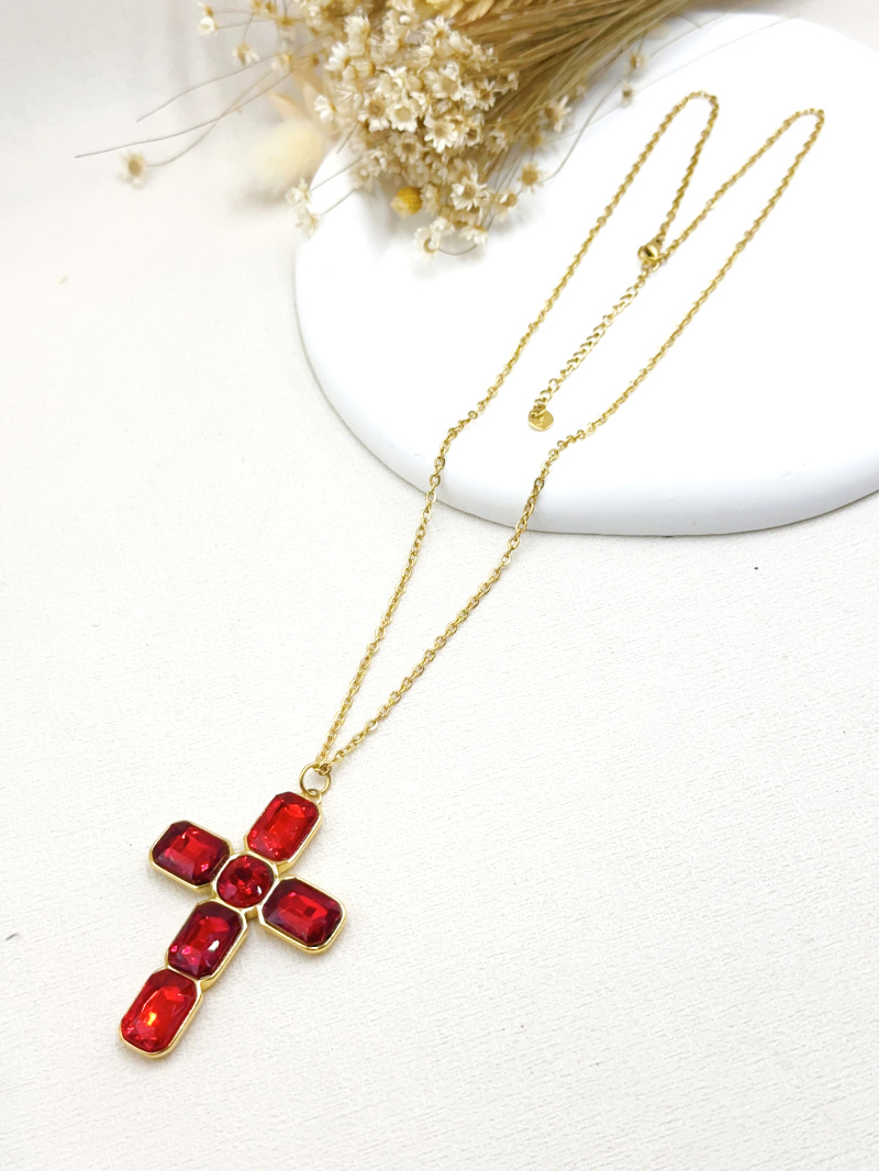 • Pendentif croix cristal noir, blanc, rouge ou vert.