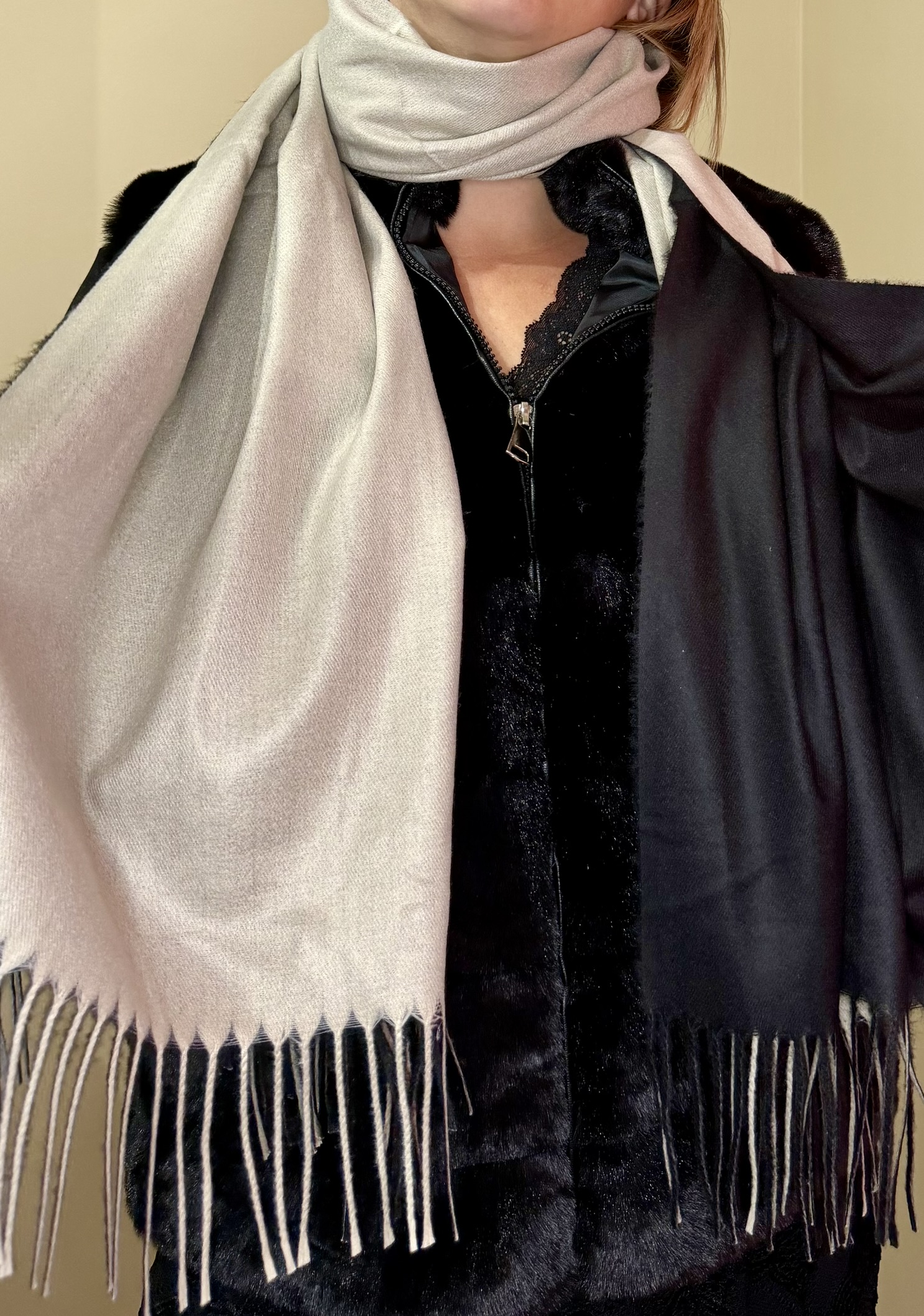 Enveloppe-toi de douceur avec cette écharpe longue double face et bicolore, parfaite pour allier chaleur et style.