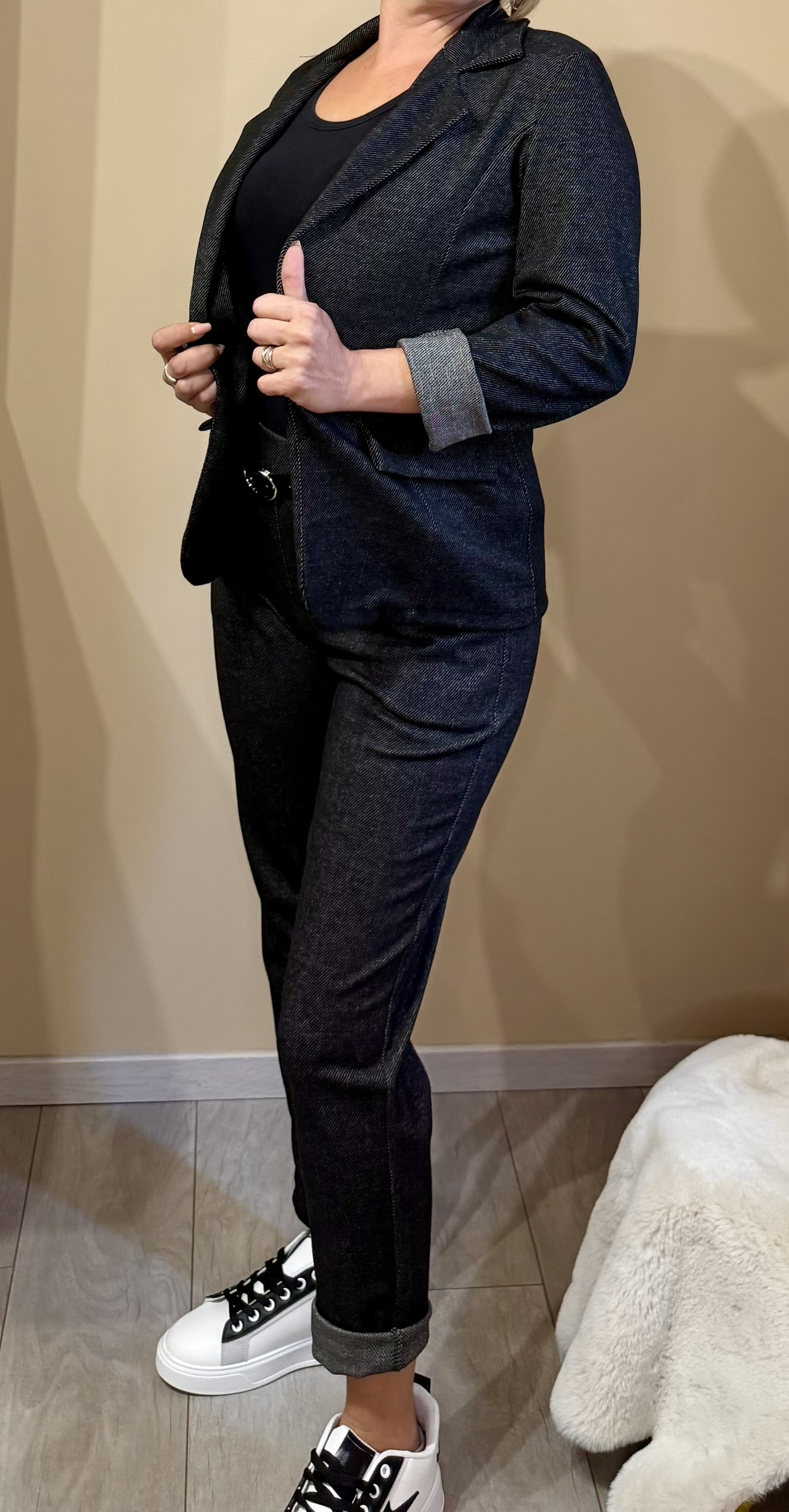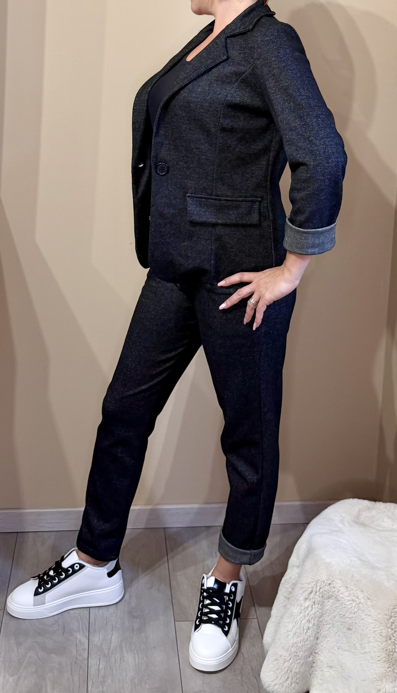 Affirme ton allure avec cet ensemble chic et structuré composé d’un blazer cintré et d’un pantalon chino assorti.