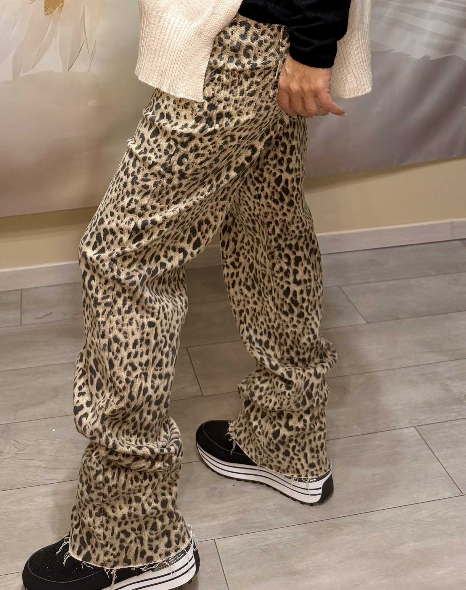 Ose la différence avec ce jean long imprimé léopard, une pièce forte au style affirmé et ultra-tendance.