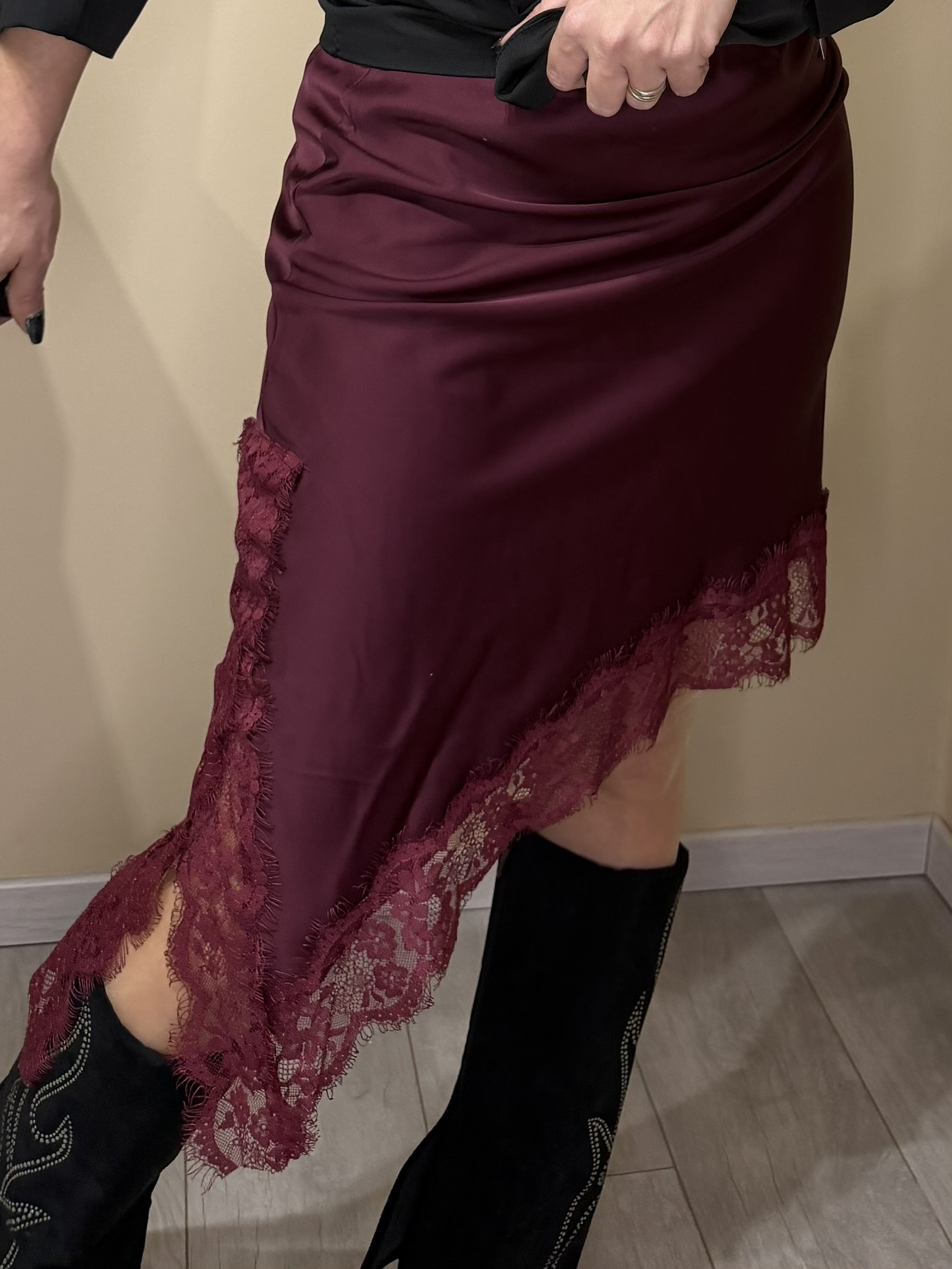 Jupe satinée dentelle