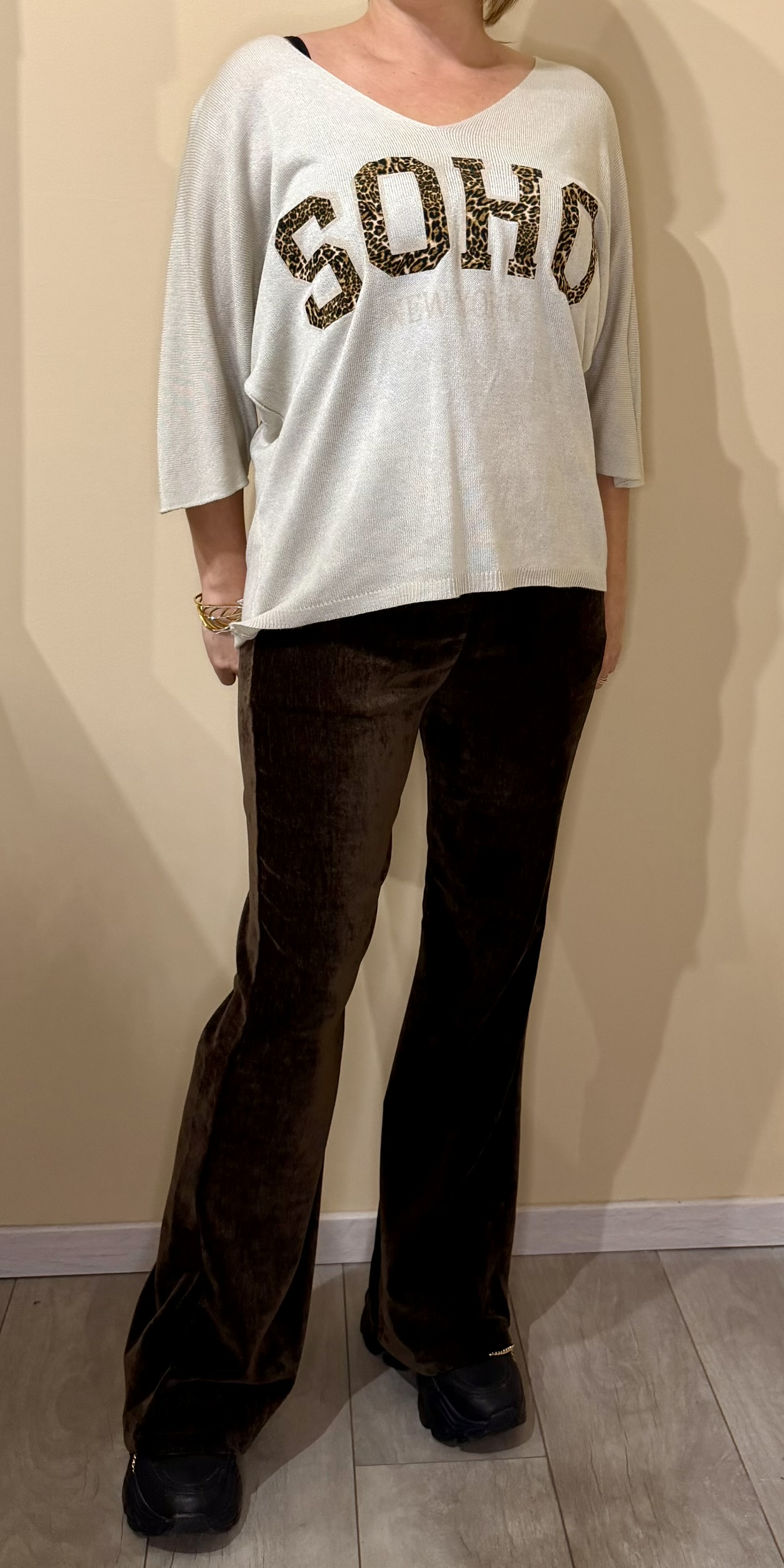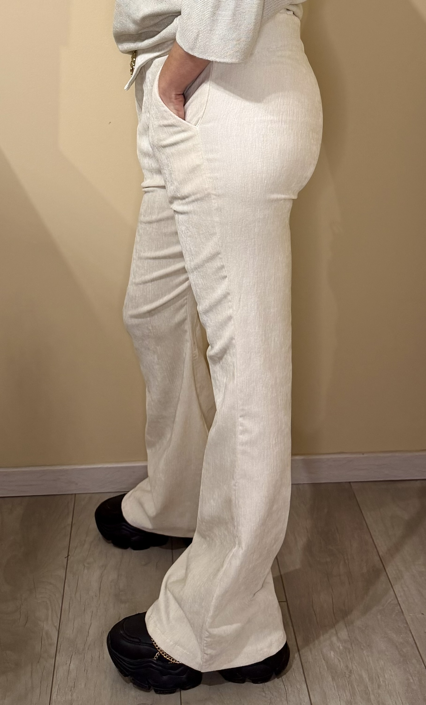 Sa coupe évasée allonge la jambe et crée une allure féminine et sophistiquée, idéale pour une tenue de soirée comme pour un look habillé du quotidien. À associer avec un top ajusté ou un pull fin pour un style irrésistible.