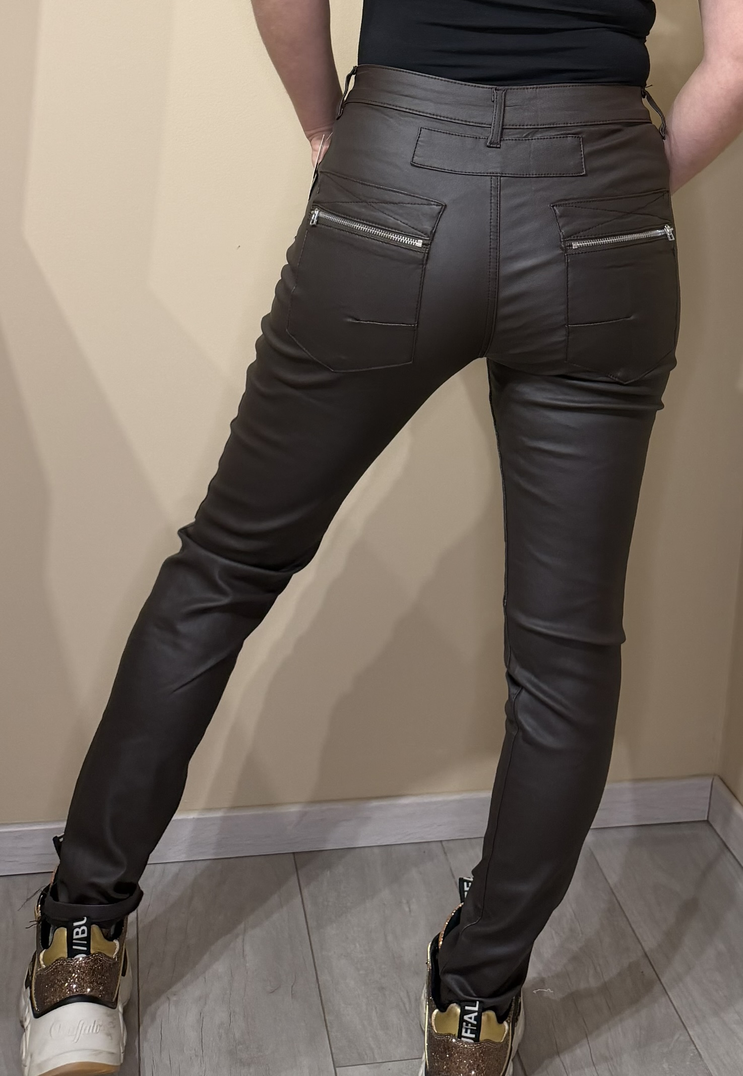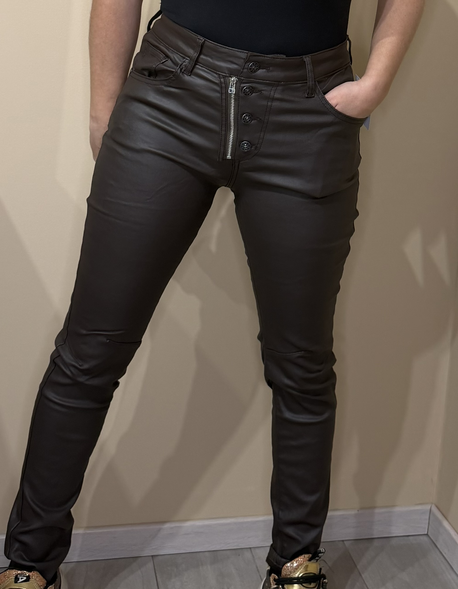 Affirme ton style avec ce pantalon huilé marron à la coupe slim, une pièce forte et ultra tendance qui sublime la silhouette. Son effet huilé apporte une touche moderne et sophistiquée, idéale pour composer des looks audacieux aussi bien de jour que de nuit.
