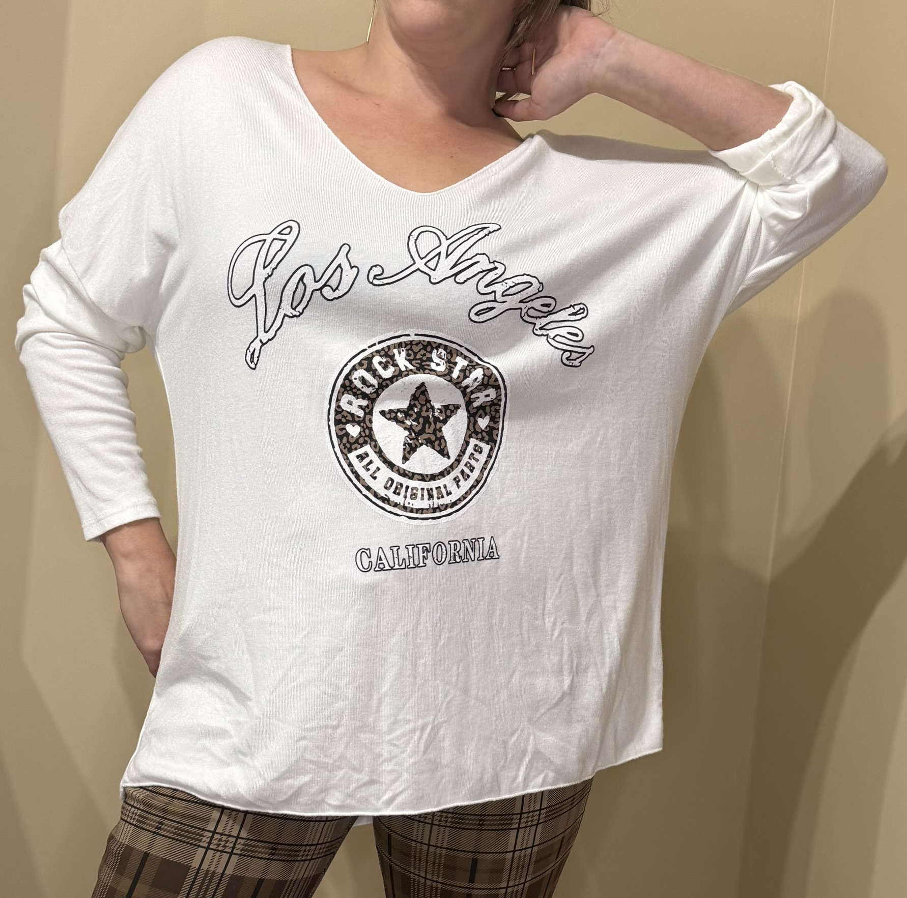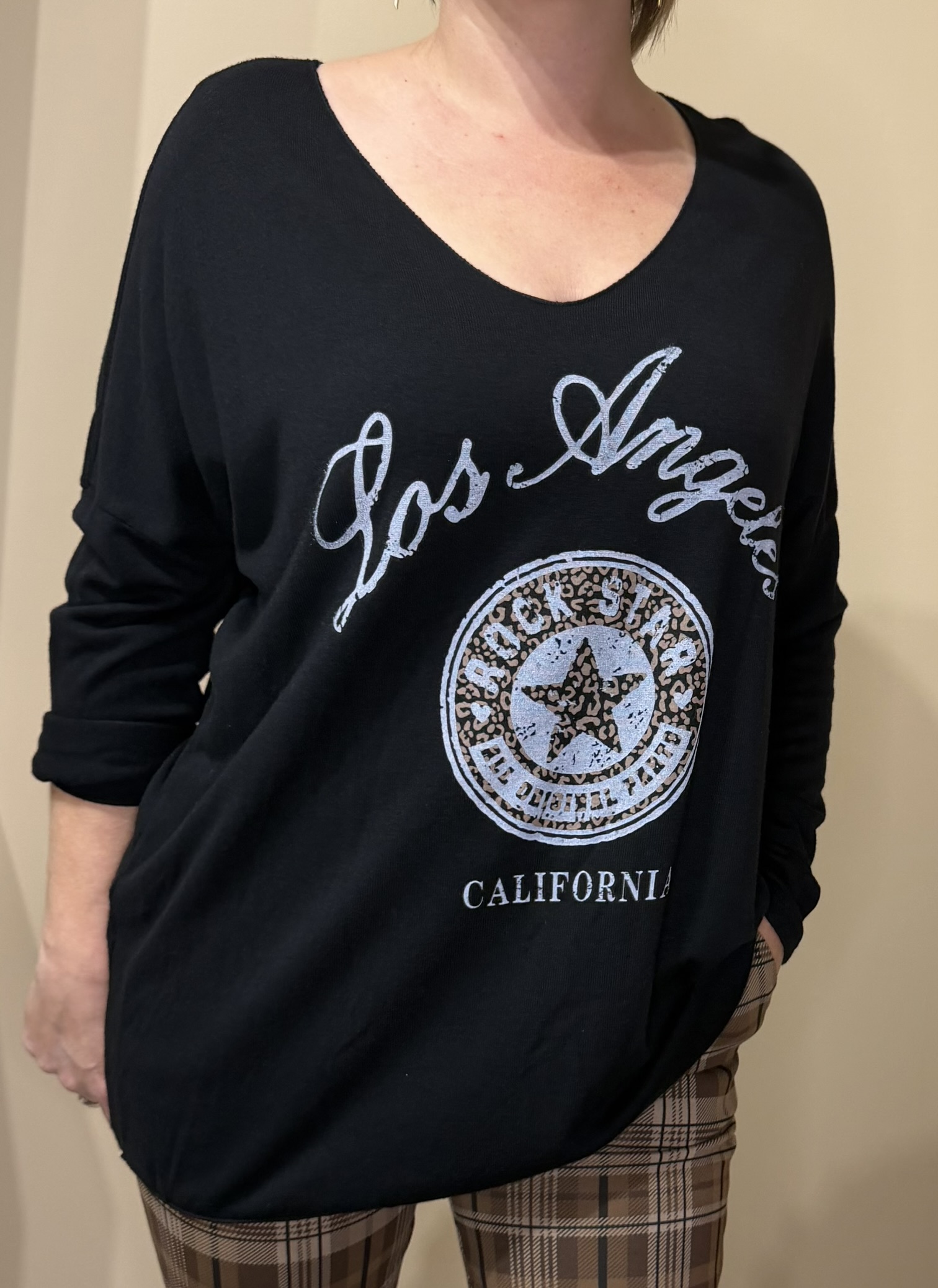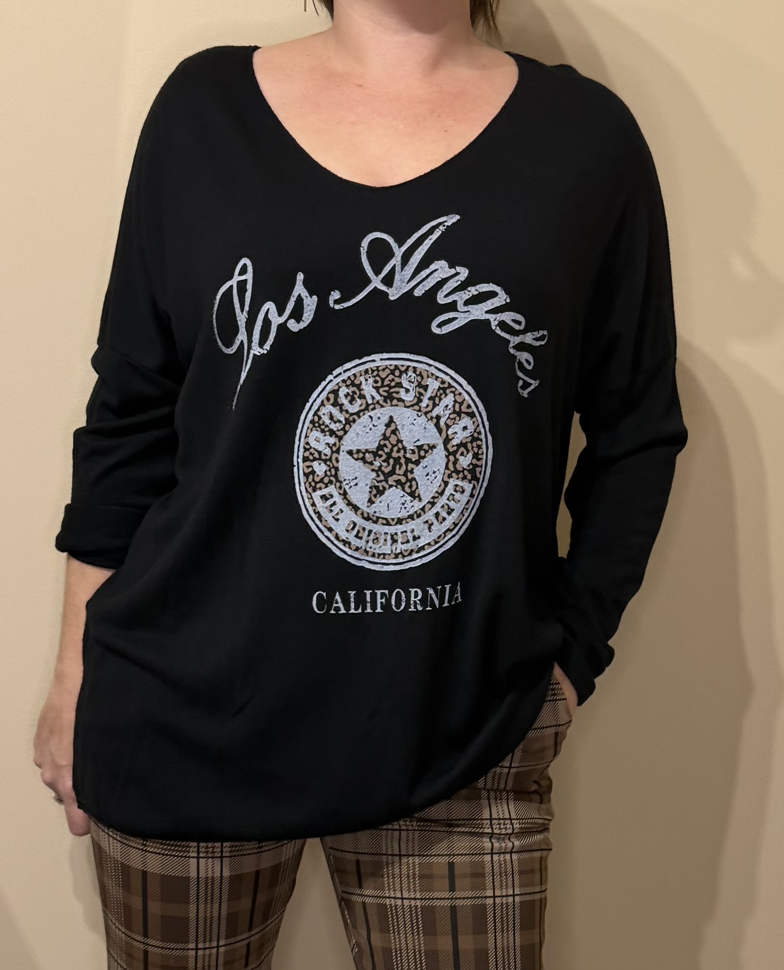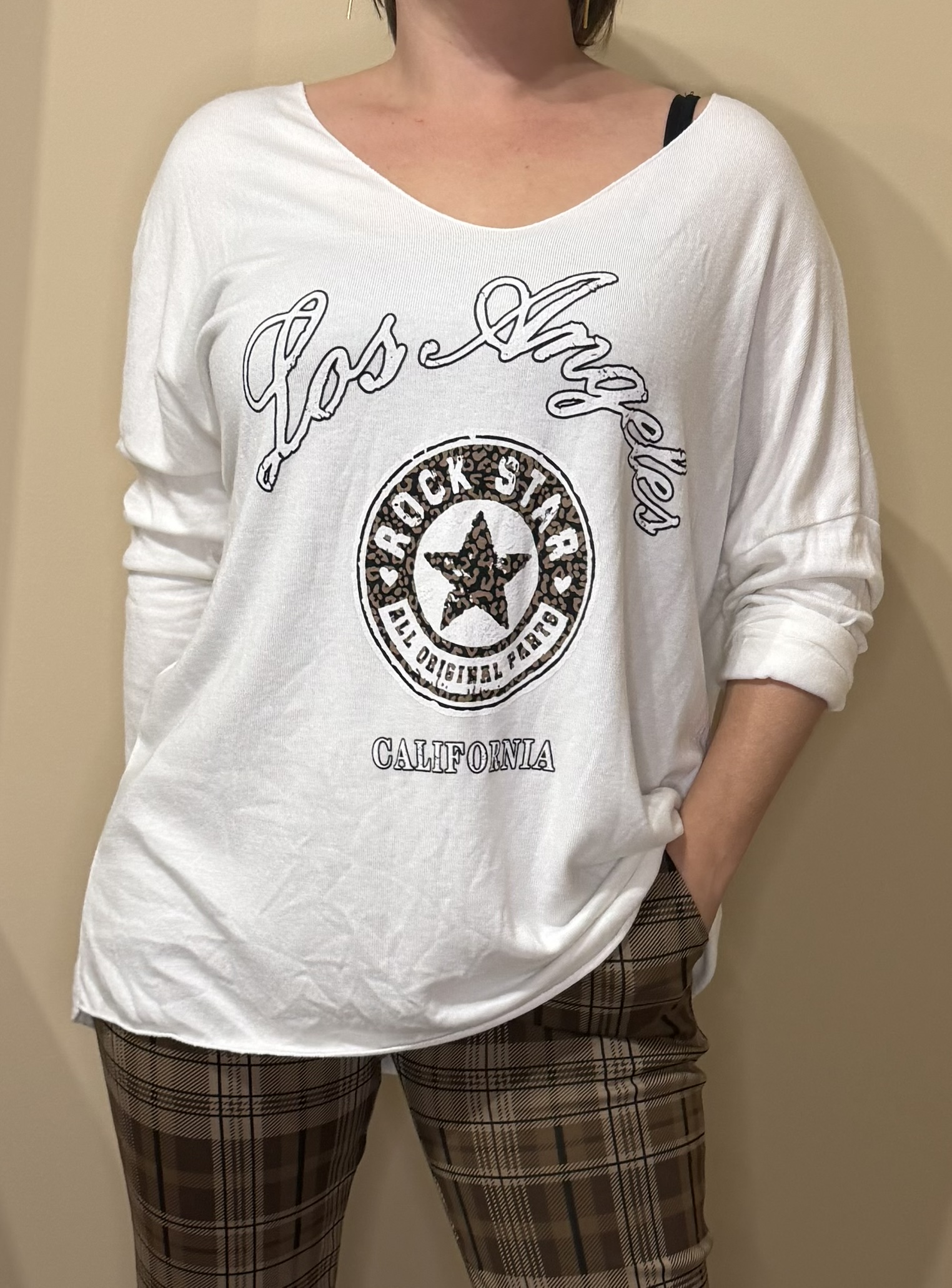Son inscription Los Angeles / California associée au motif étoile léopard Rock Star apporte une touche rock et urbaine, idéale pour un look moderne et affirmé.