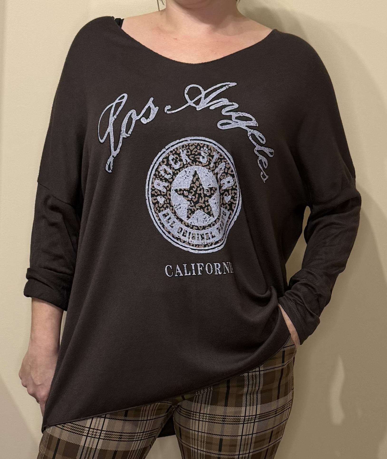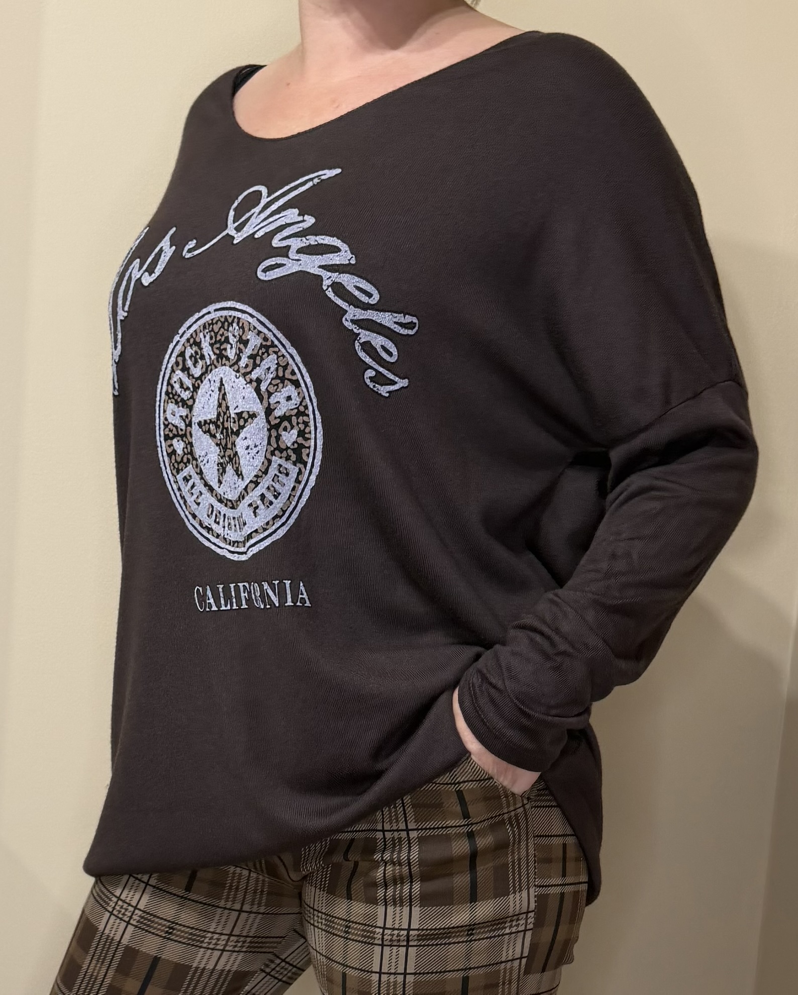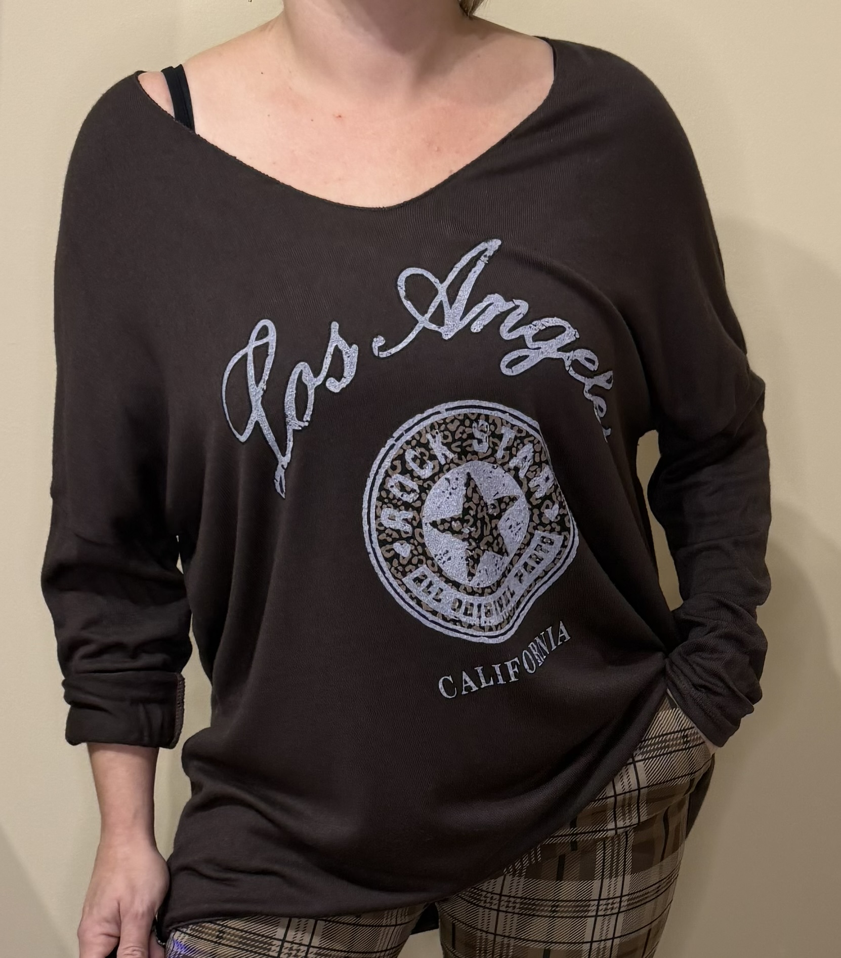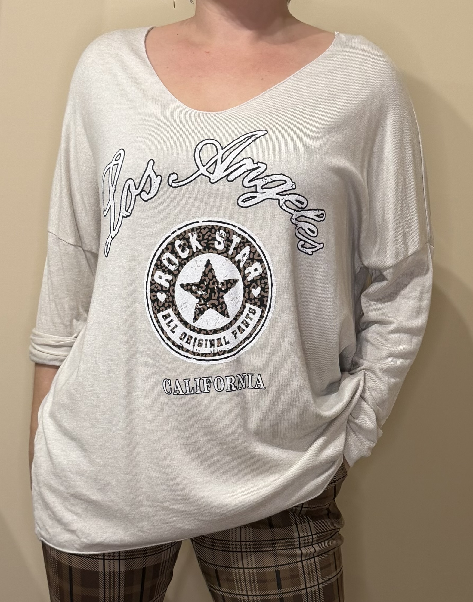 Son inscription Los Angeles / California associée au motif étoile léopard Rock Star apporte une touche rock et urbaine, idéale pour un look moderne et affirmé.