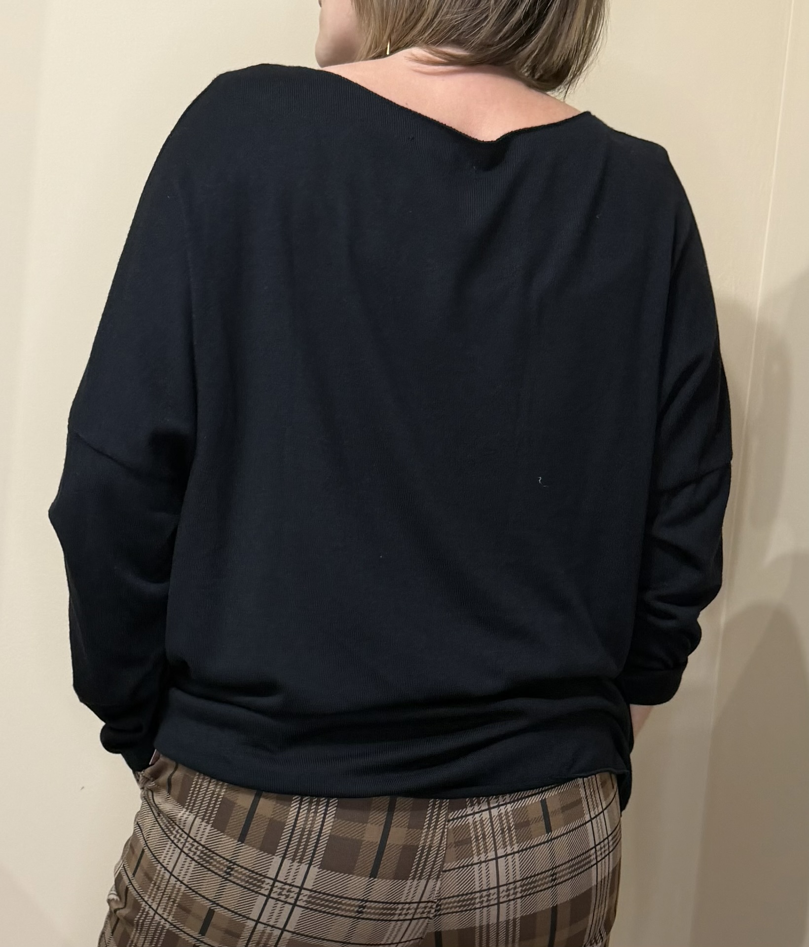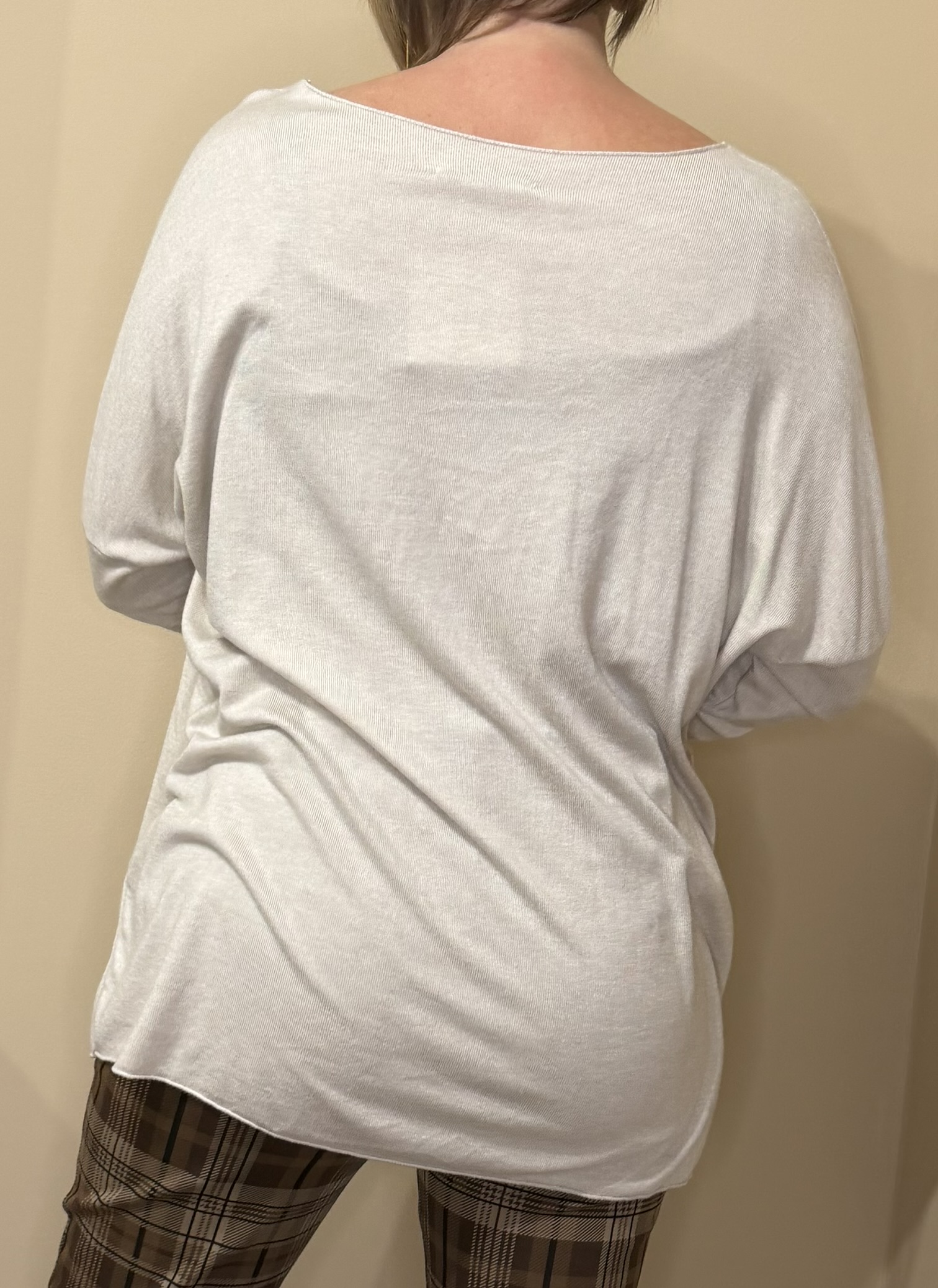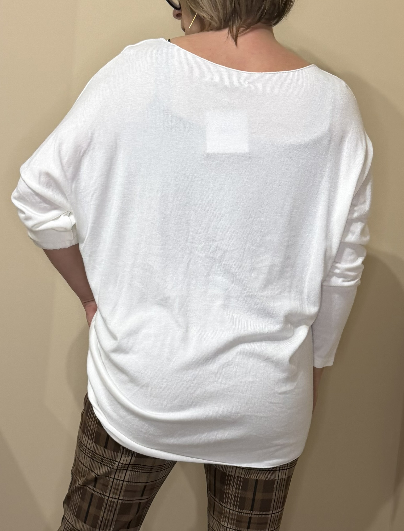 Sa maille douce et chaude enveloppe la silhouette avec légèreté, tandis que sa coupe loose offre un tombé fluide et décontracté. Facile à associer, il se porte aussi bien avec un jean qu’avec un pantalon plus habillé pour casser les codes avec style.