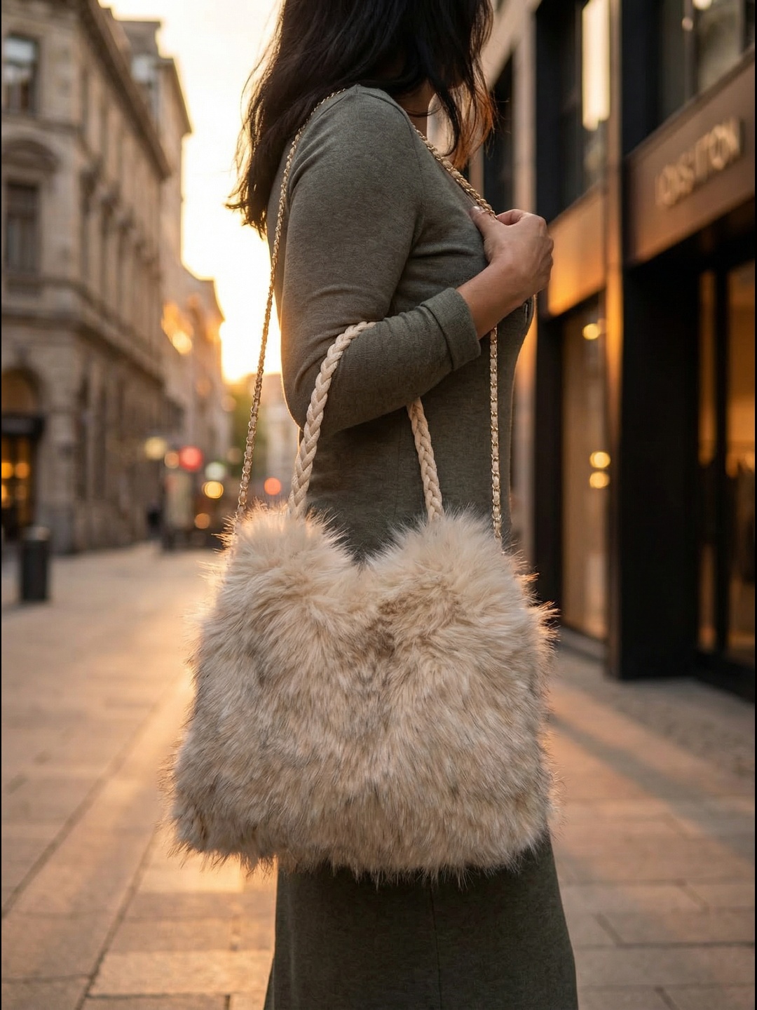 Affirme ton style avec ce sac à main en fausse fourrure, une pièce à la fois élégante et moderne.
