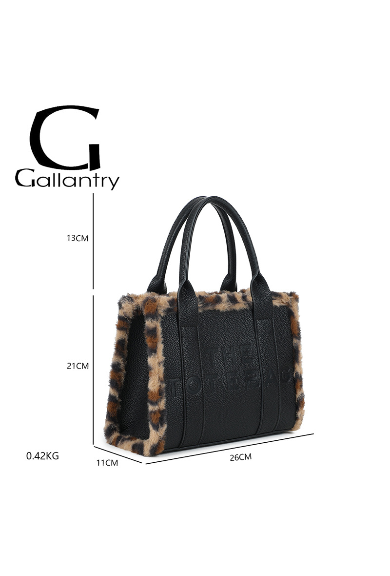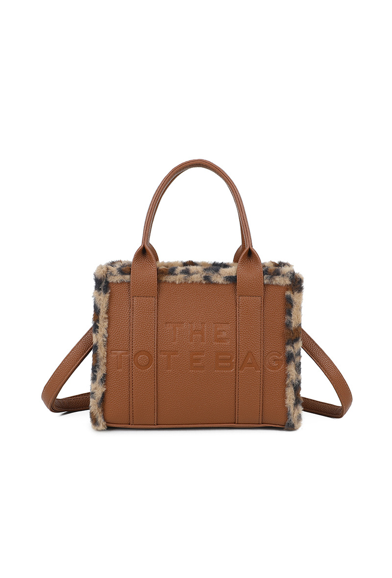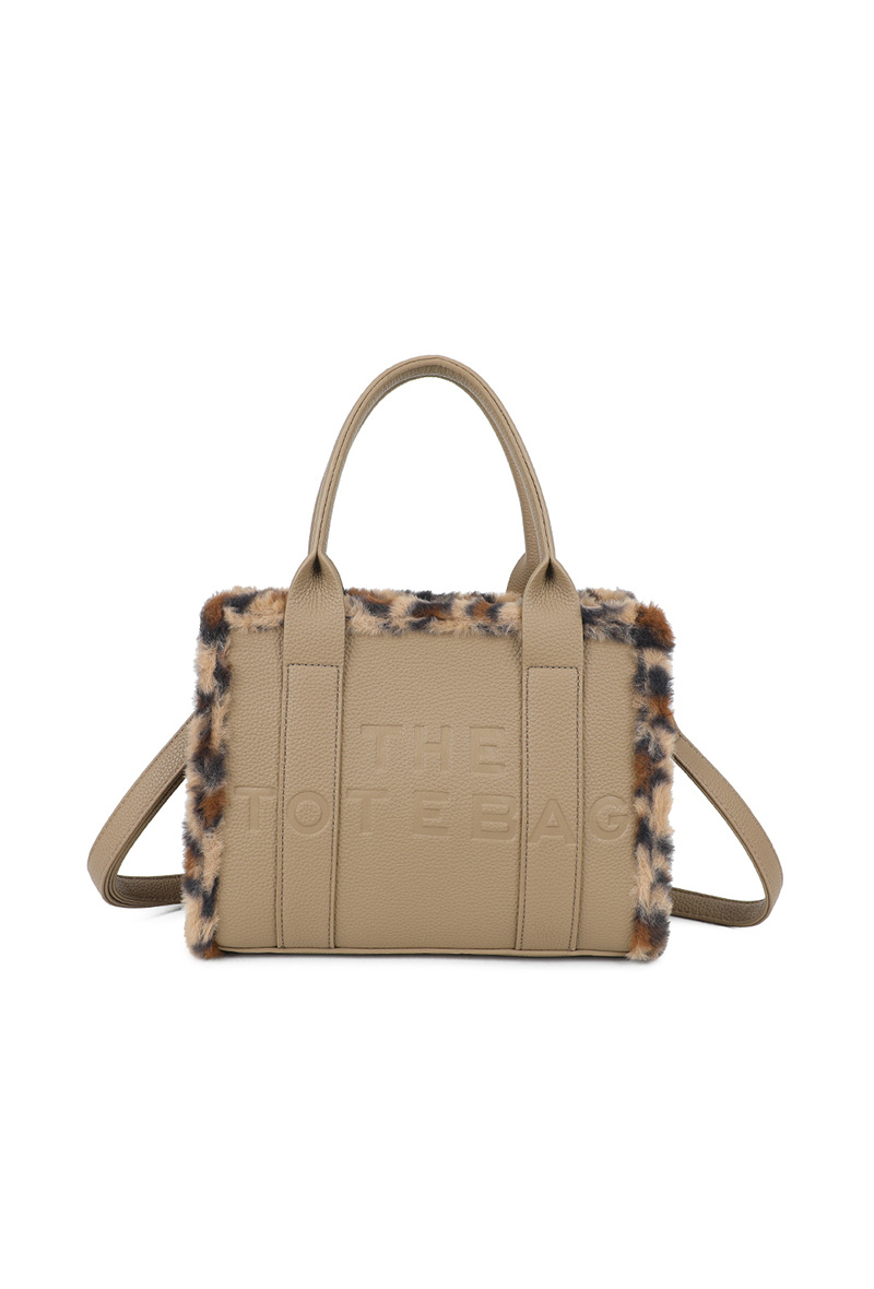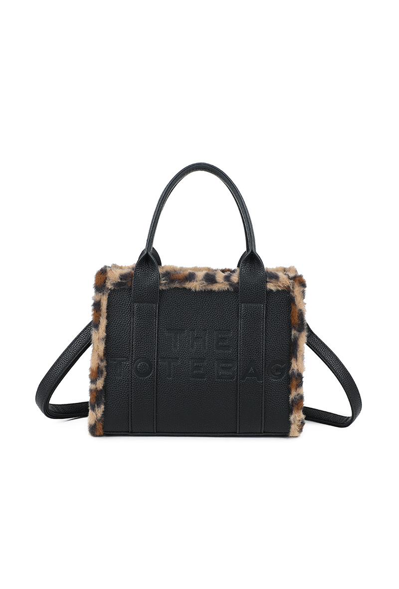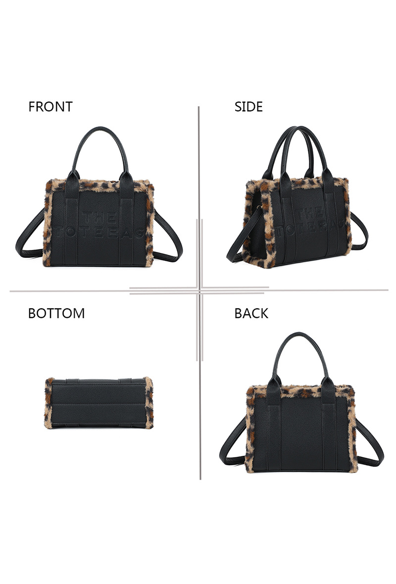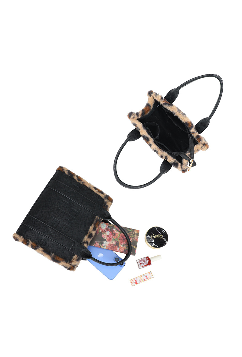 Affirme ton style avec ce sac à main Tote Bag sublimé par une bordure en fausse fourrure léopard pour une touche tendance et sophistiquée.