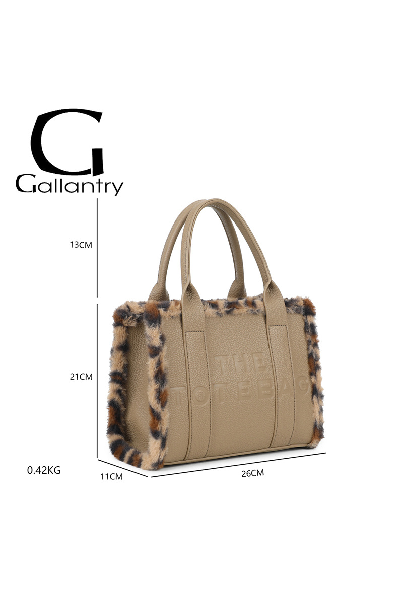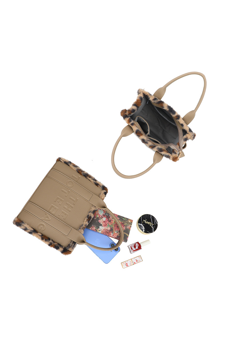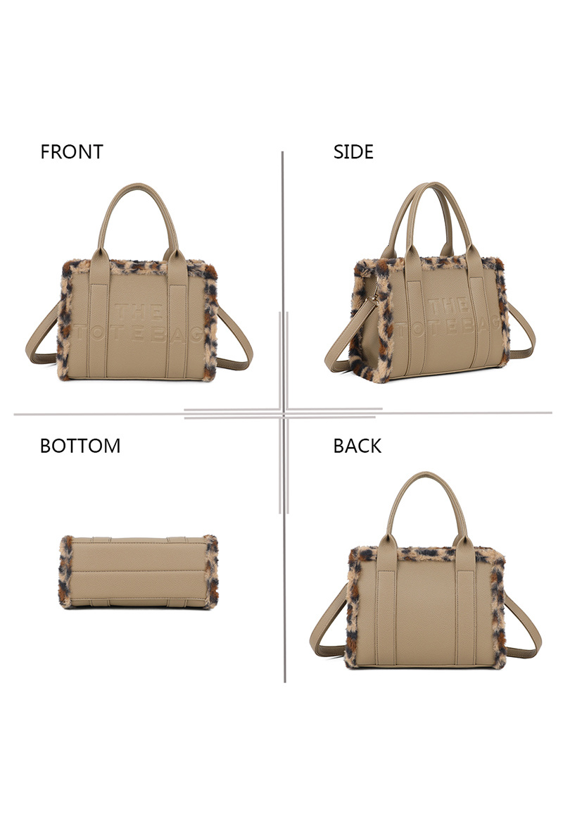 Affirme ton style avec ce sac à main Tote Bag sublimé par une bordure en fausse fourrure léopard pour une touche tendance et sophistiquée.