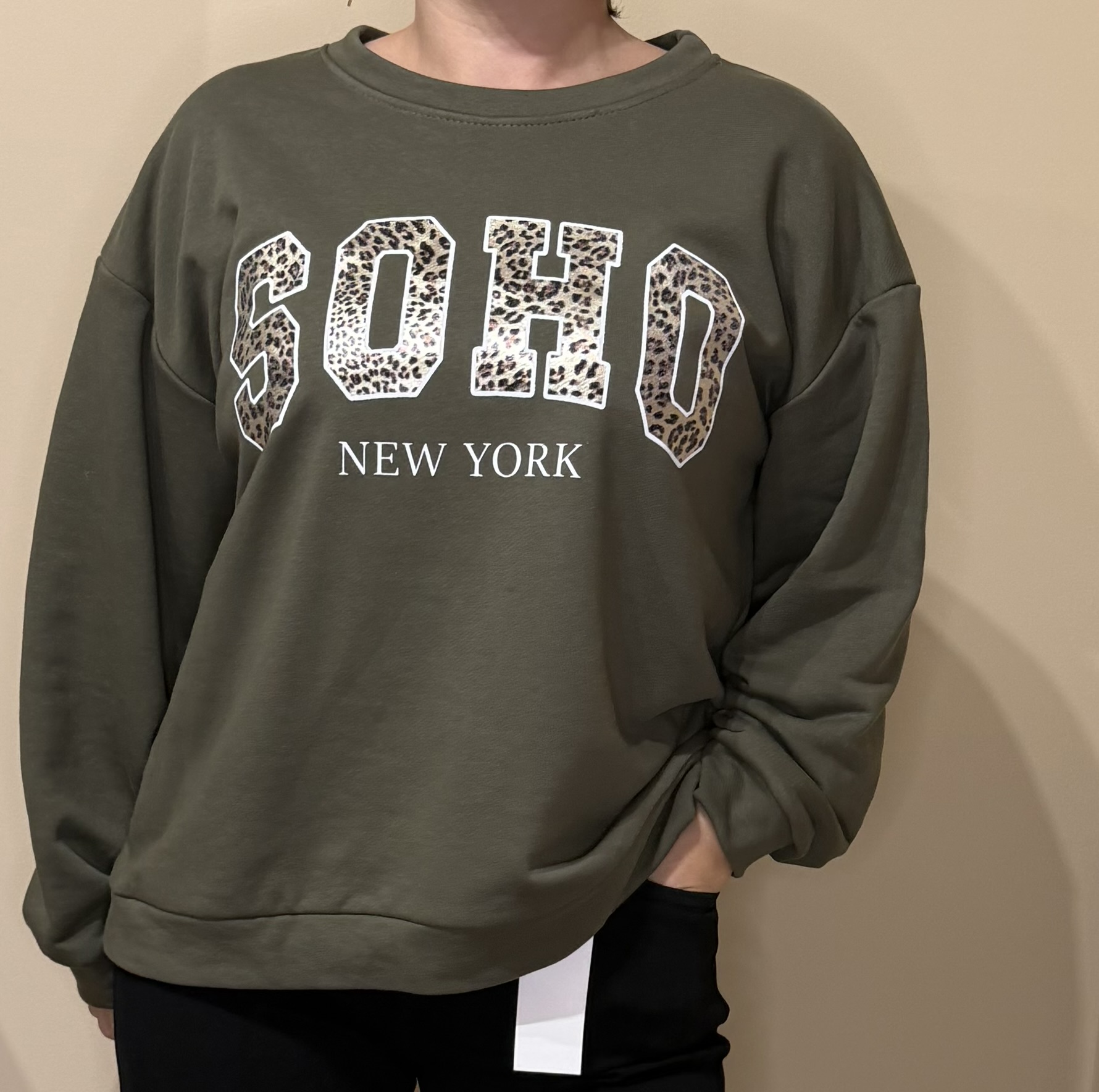 Affirme ton style urbain et tendance avec ce sweat “SOHO NEW YORK” ultra stylé. Son imprimé léopard sur les lettres apporte une touche sauvage et originale à un basique confortable et décontracté.