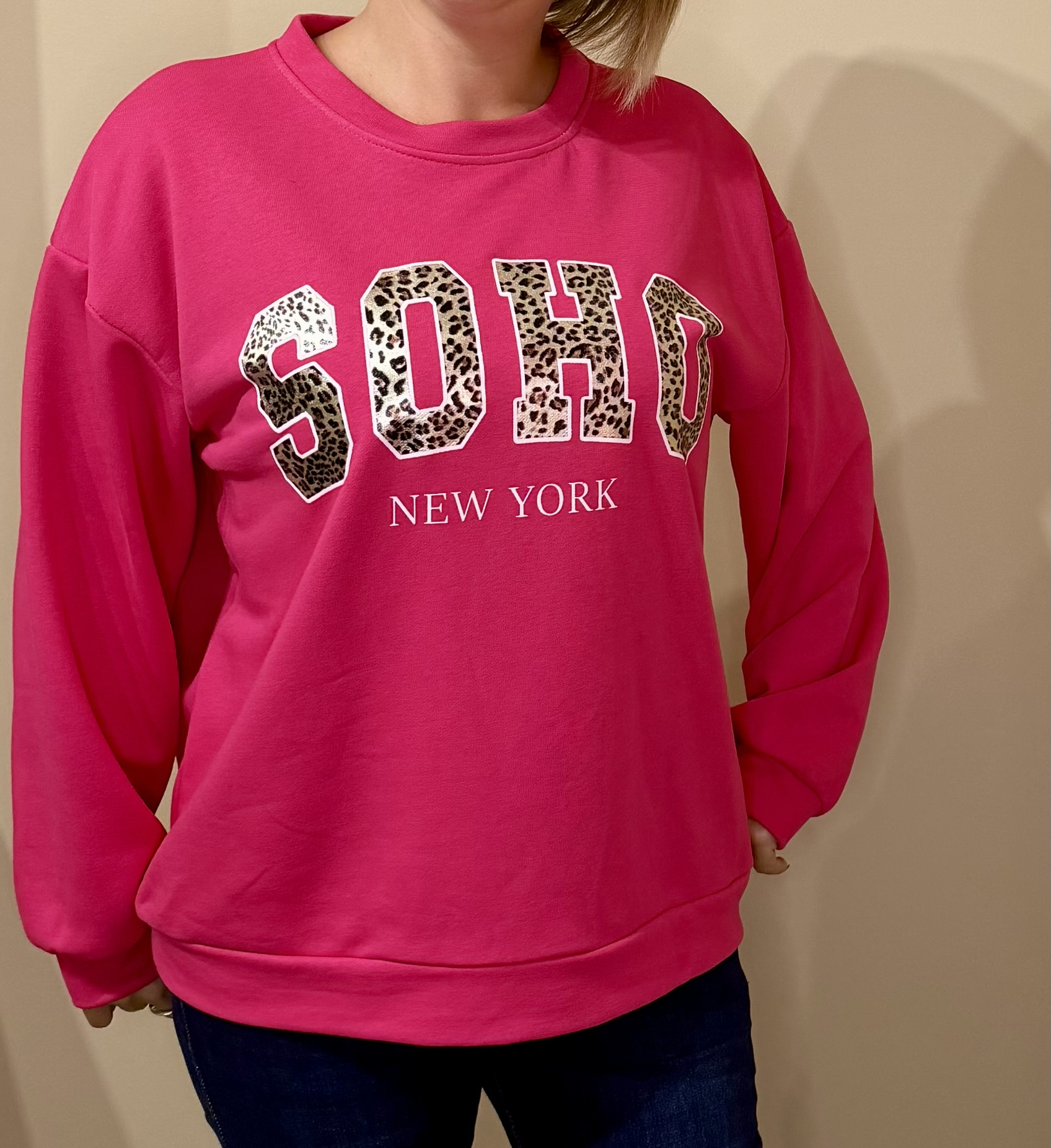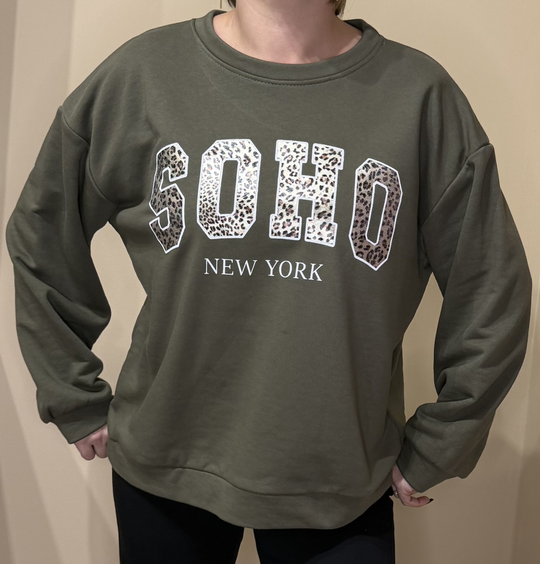 - Imprimé “SOHO” en lettres léopard + “NEW YORK” blanc