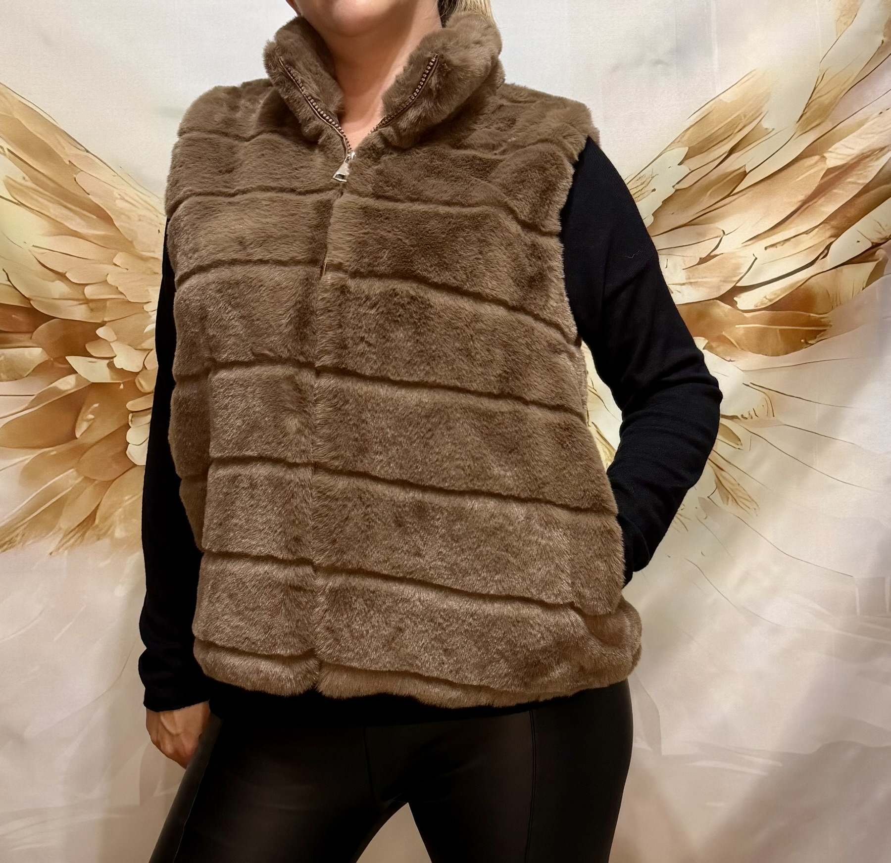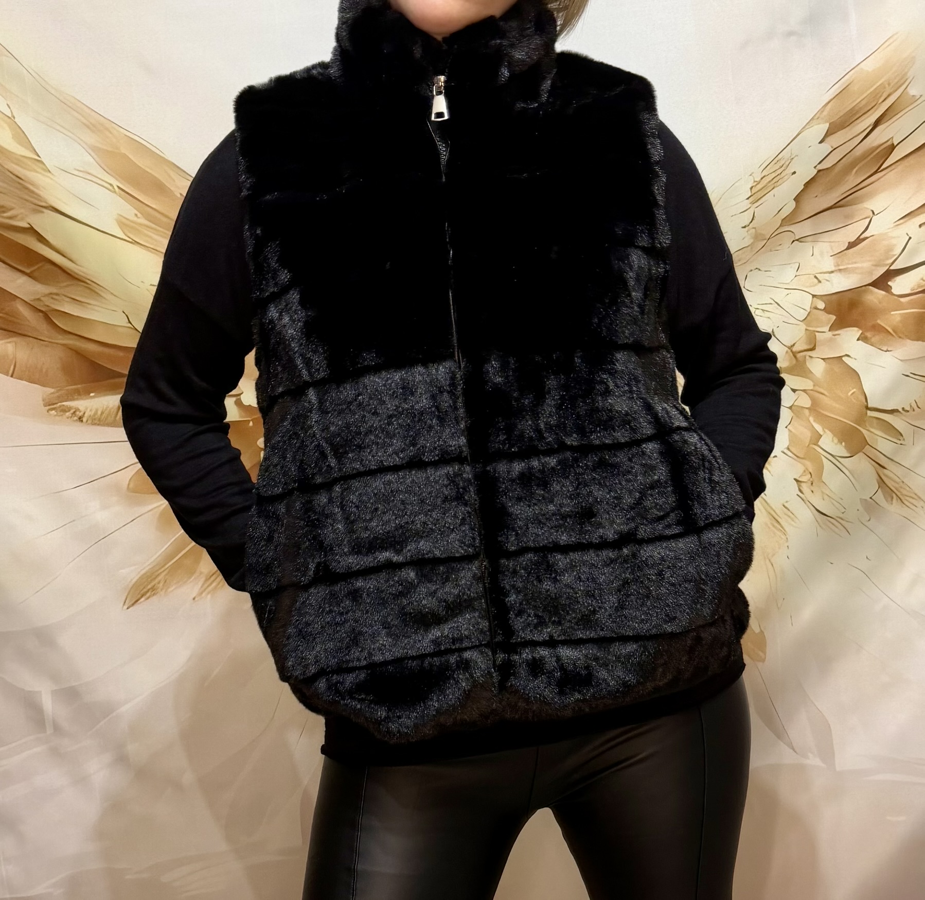 Apporte une touche de chaleur et d’élégance à tes looks avec cette veste sans manches en fausse fourrure.